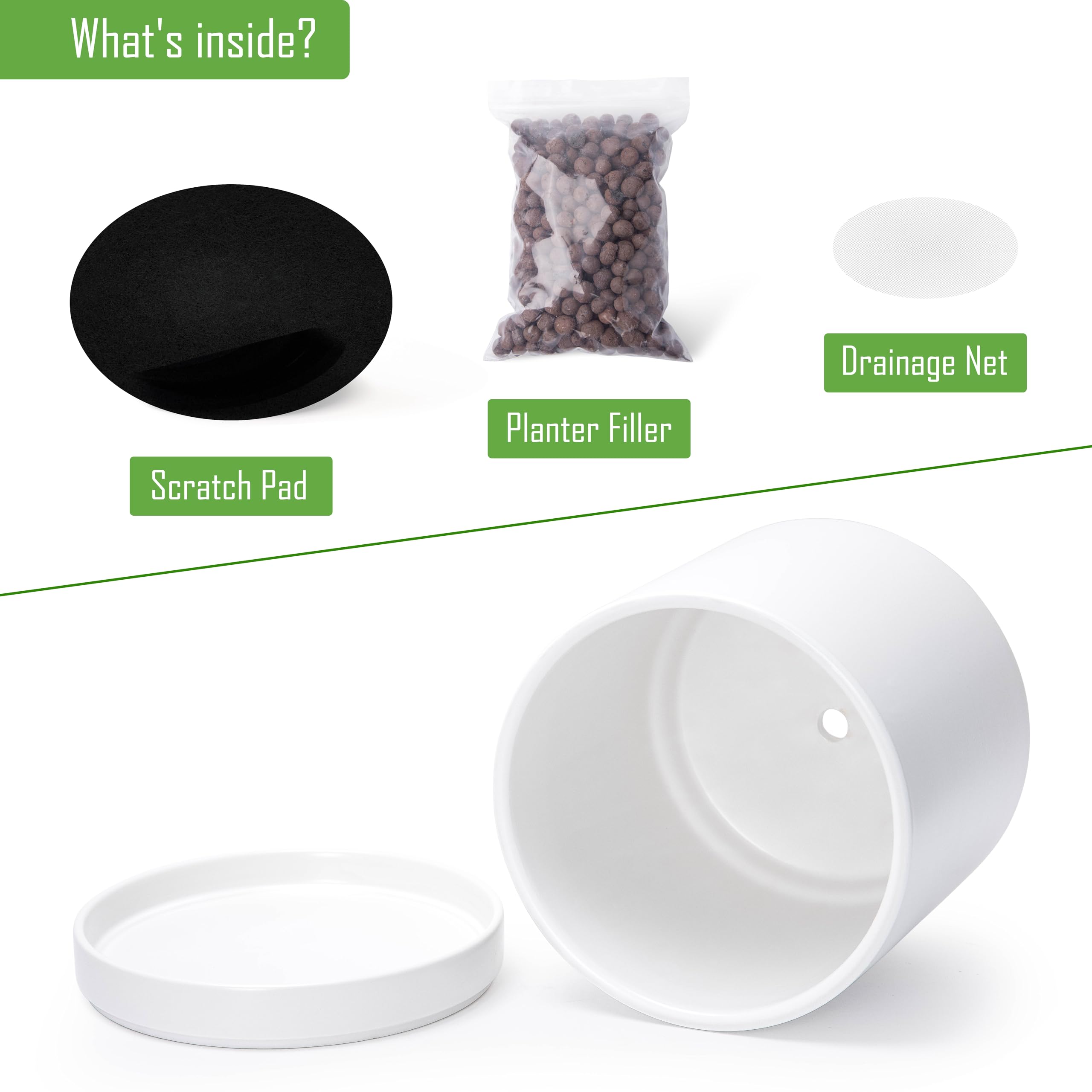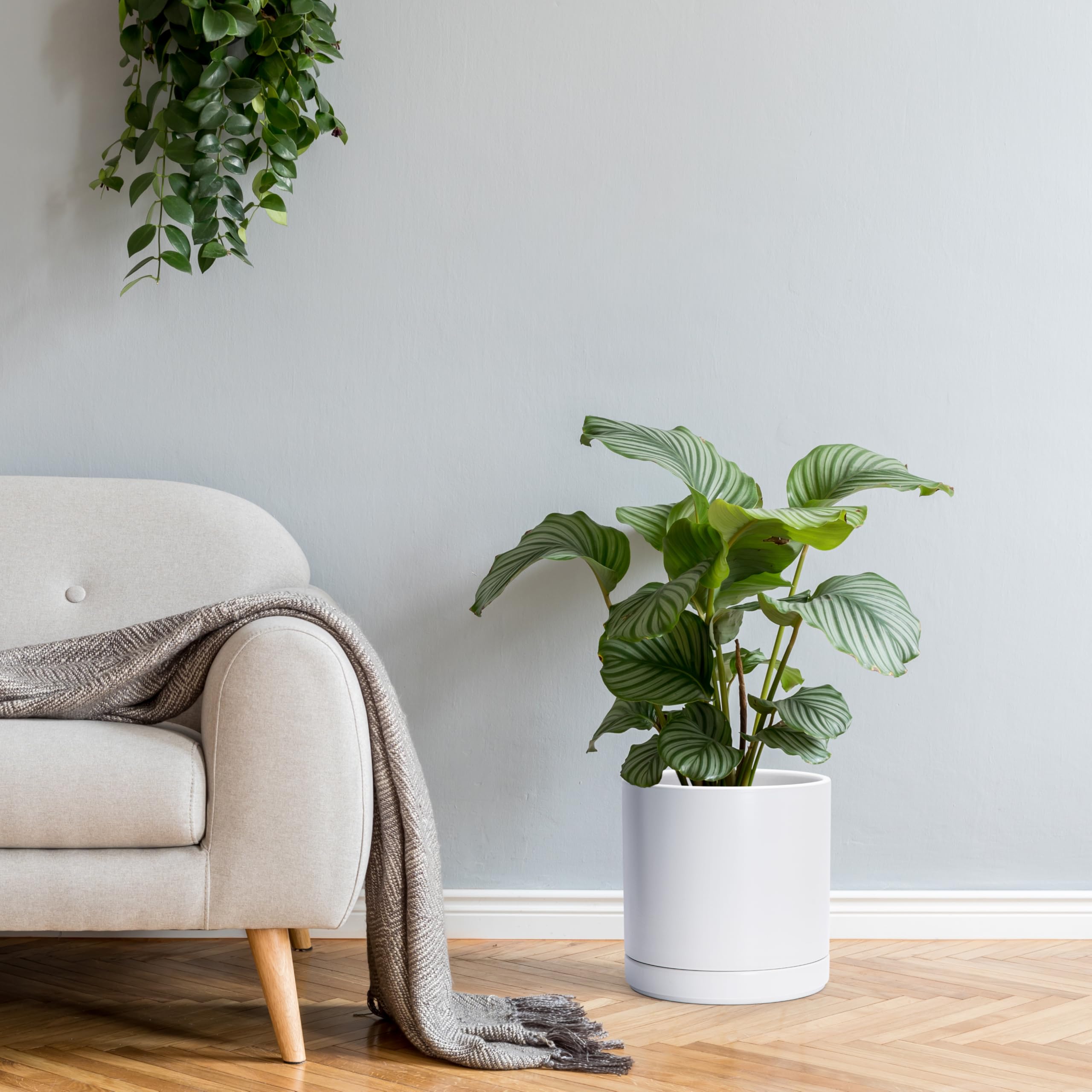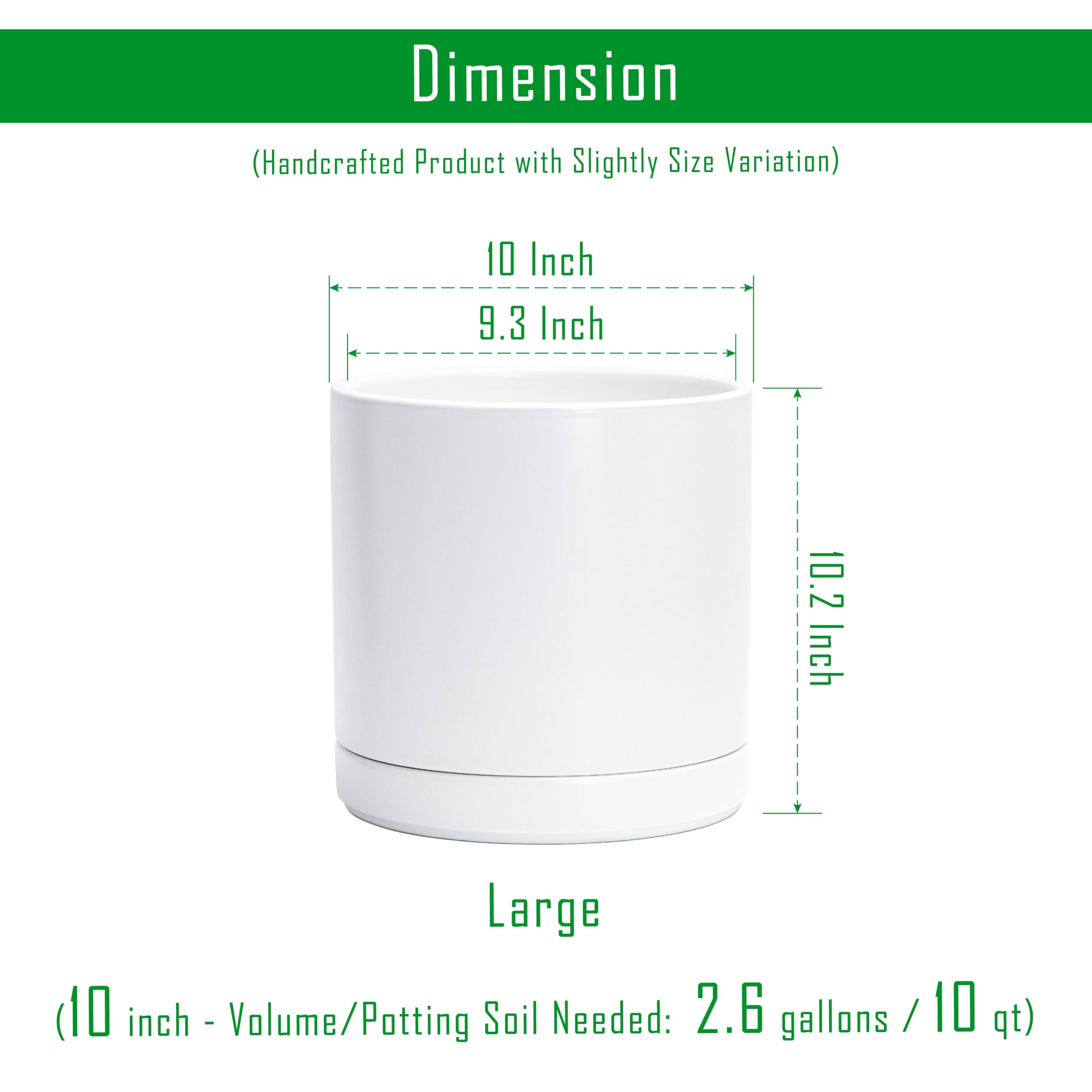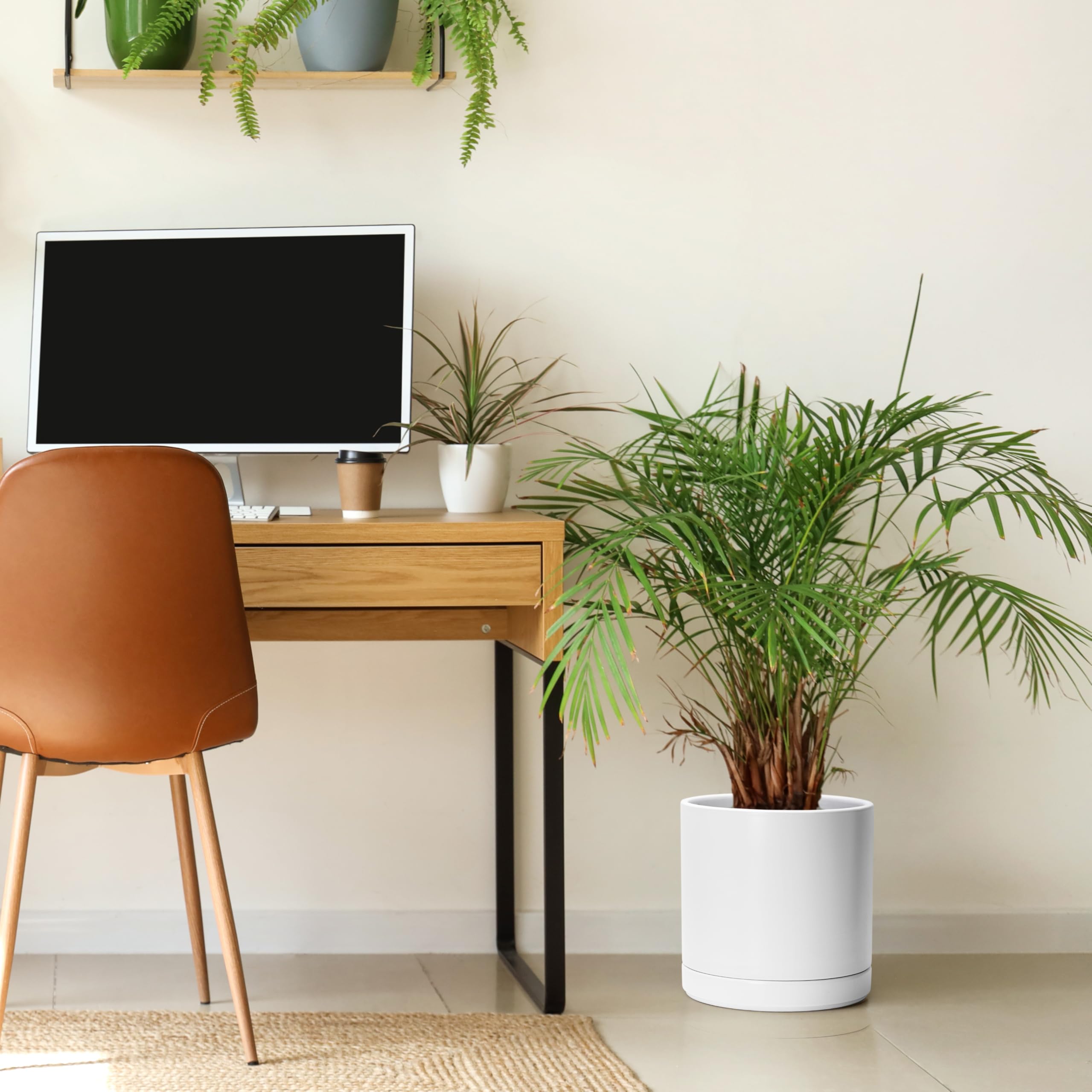 D'vine Dev 94-O-E-1 Keramik-Blumentopf mit Ablaufloch und Untersetzer, zylinderförmig, runder Blumentopf für den Innenbereich, Weiss, 25,4 cm