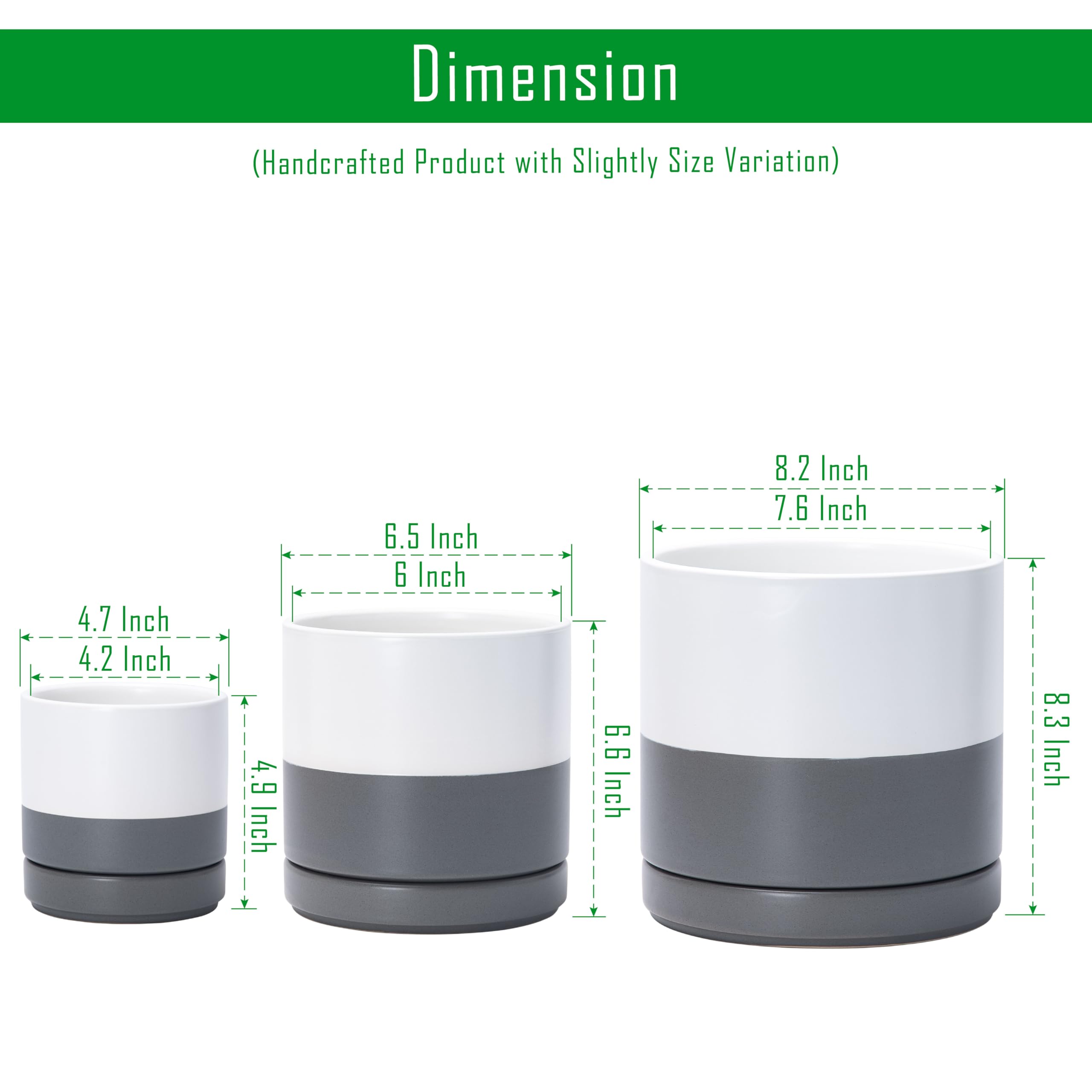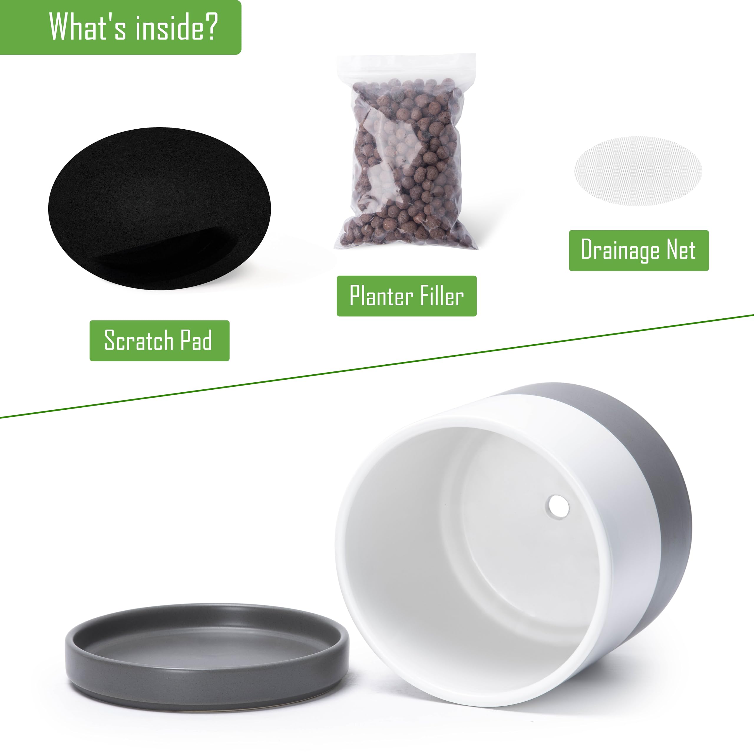 D'vine Dev 94-T-M-6 Runde Keramik-Übertöpfe mit Ablaufloch und Untersetzer, 10,2 cm, 15,2 cm, 15,2 cm, 20,3 cm, Weiss / Grau gesprenkelt