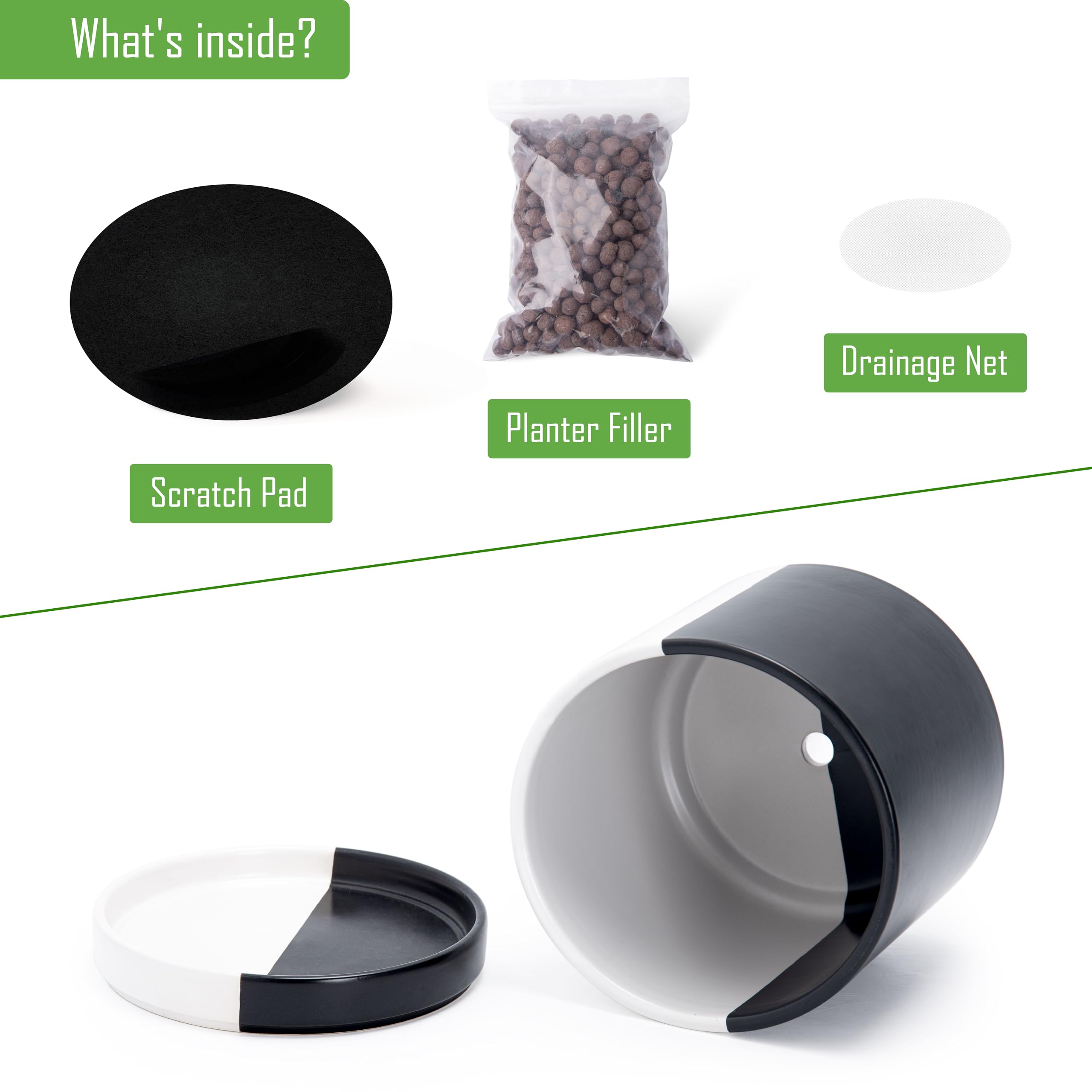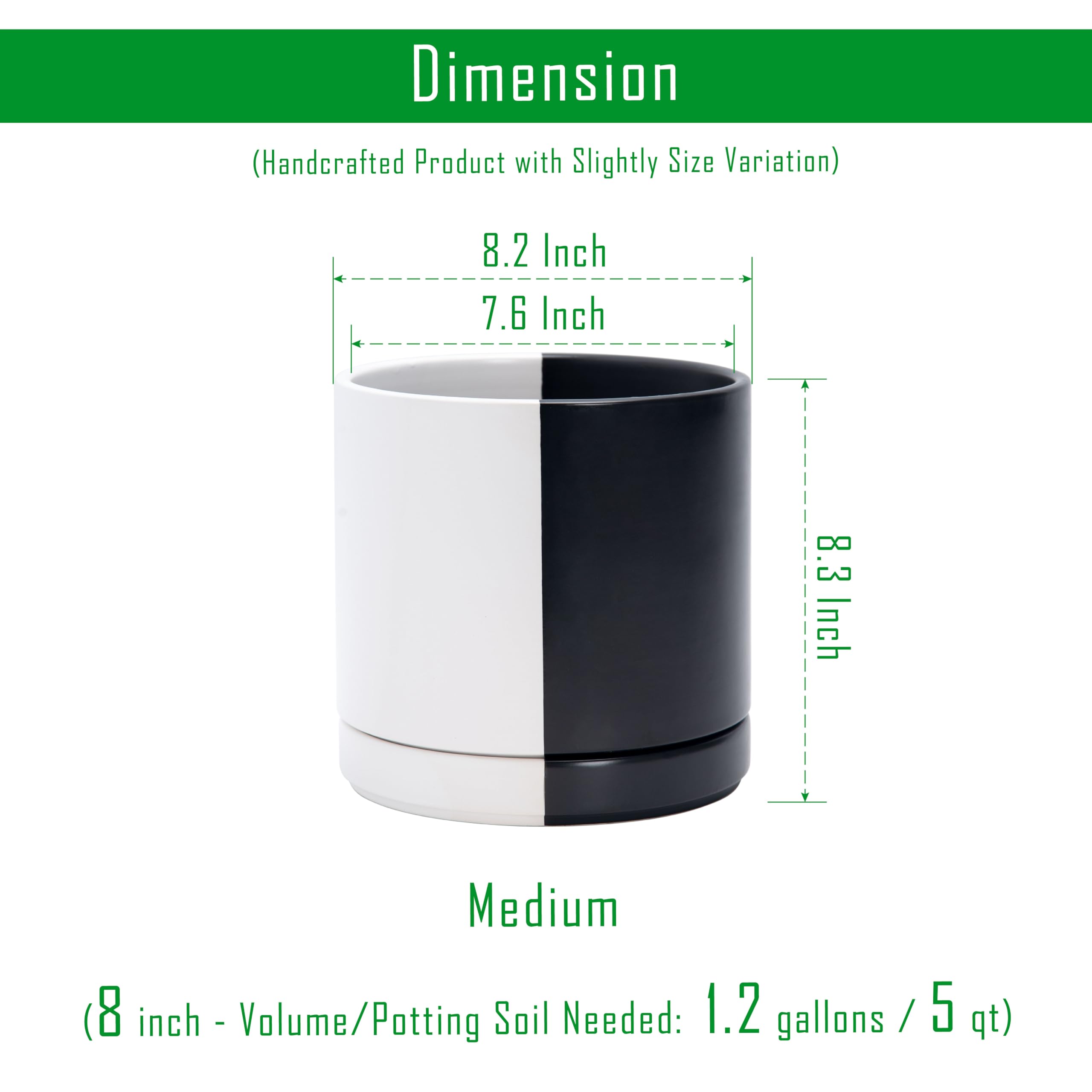 D'vine Dev 94-O-D-0 Keramik-Pflanztopf mit Ablaufloch und Untersetzer, zylinderförmig, rund, geteilt, einfarbig, Schwarz und Weiss, 21,6 cm