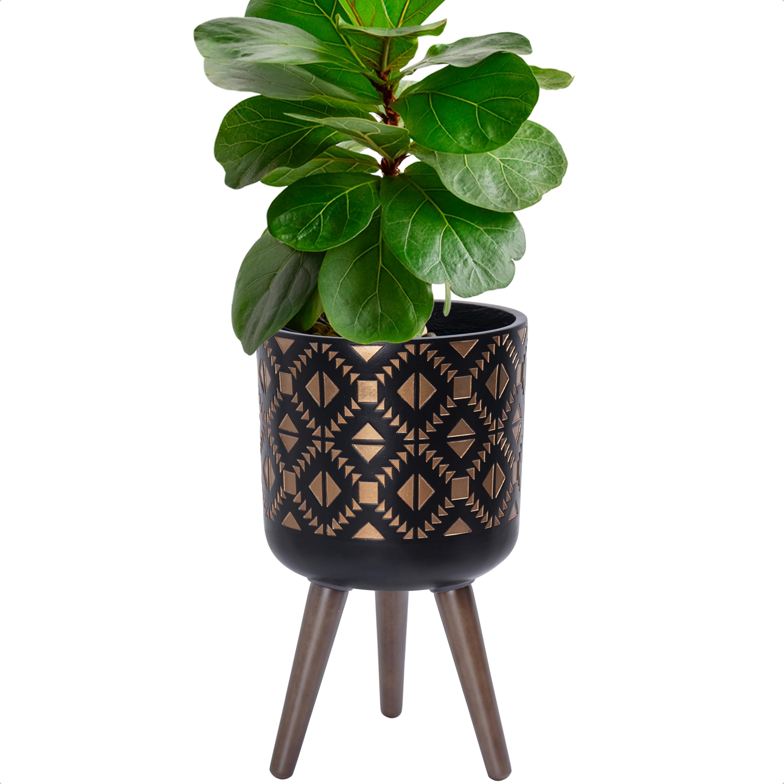 D'vine Dev 25,4 cm Pflanztopf mit Ständer, Mitte des Jahrhunderts hoher Blumentopf mit Beinen für Zimmerpflanzen, Bronze/Schwarz, 88-G-B-6