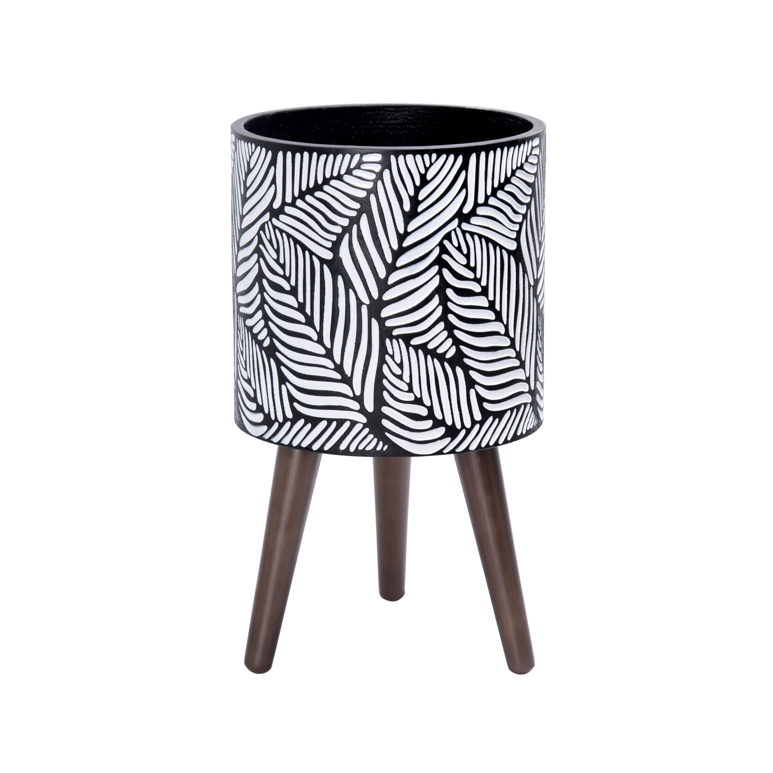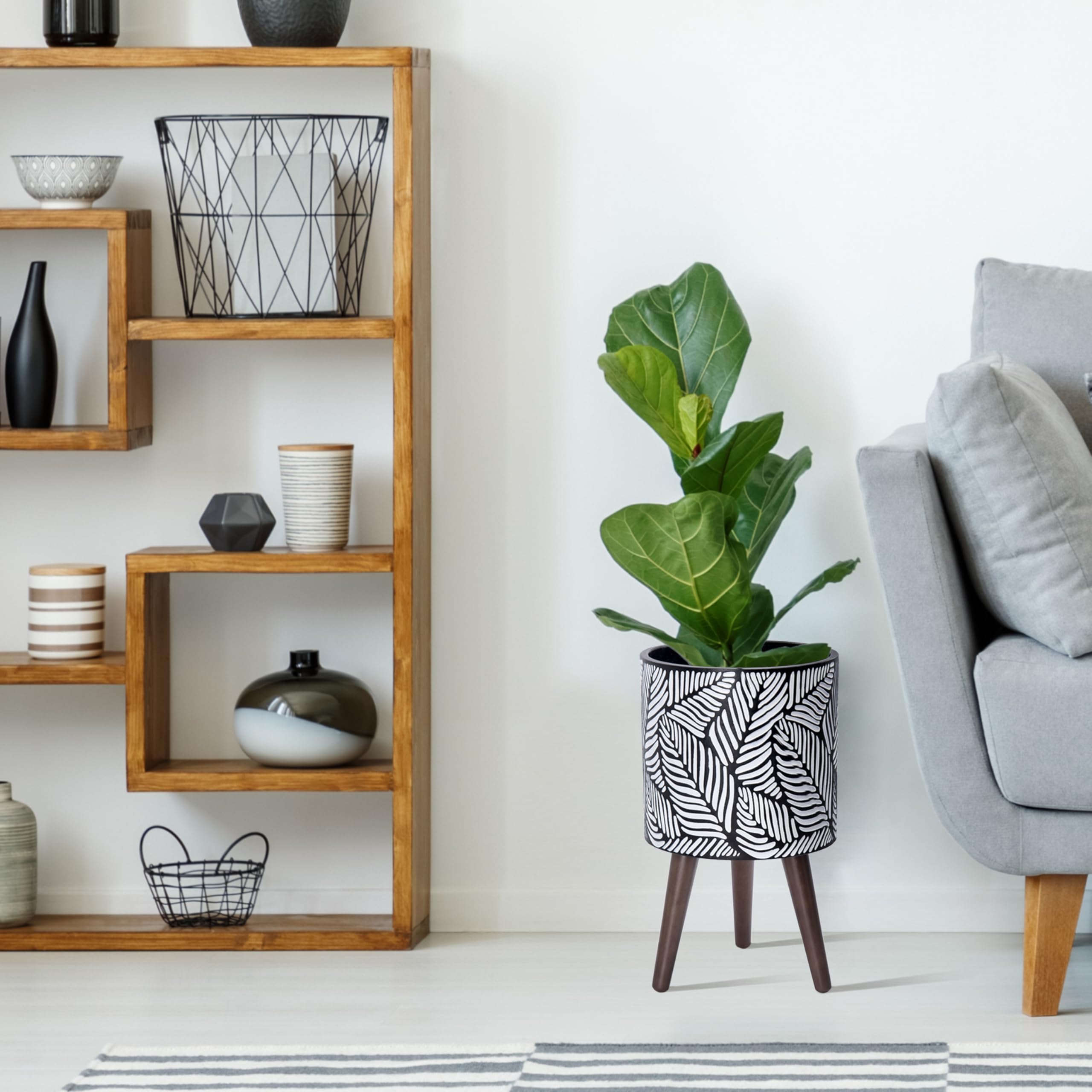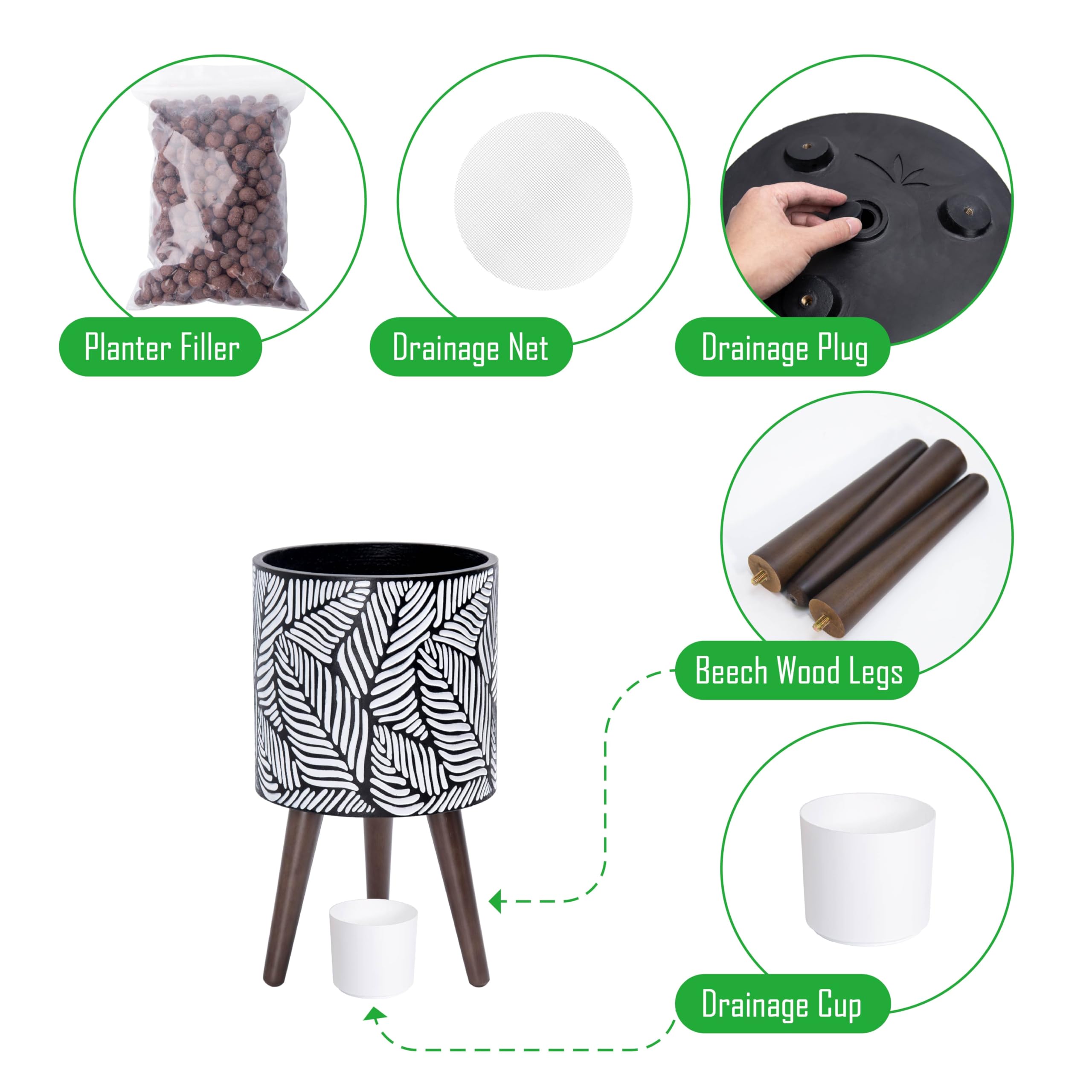 D'vine Dev 25,4 cm Übertopf mit Ständer, Mid-Century Hoher Pflanztopf mit Beinen für Zimmerpflanzen, Medium, Weiss/Grau, 88-LF-M-WG