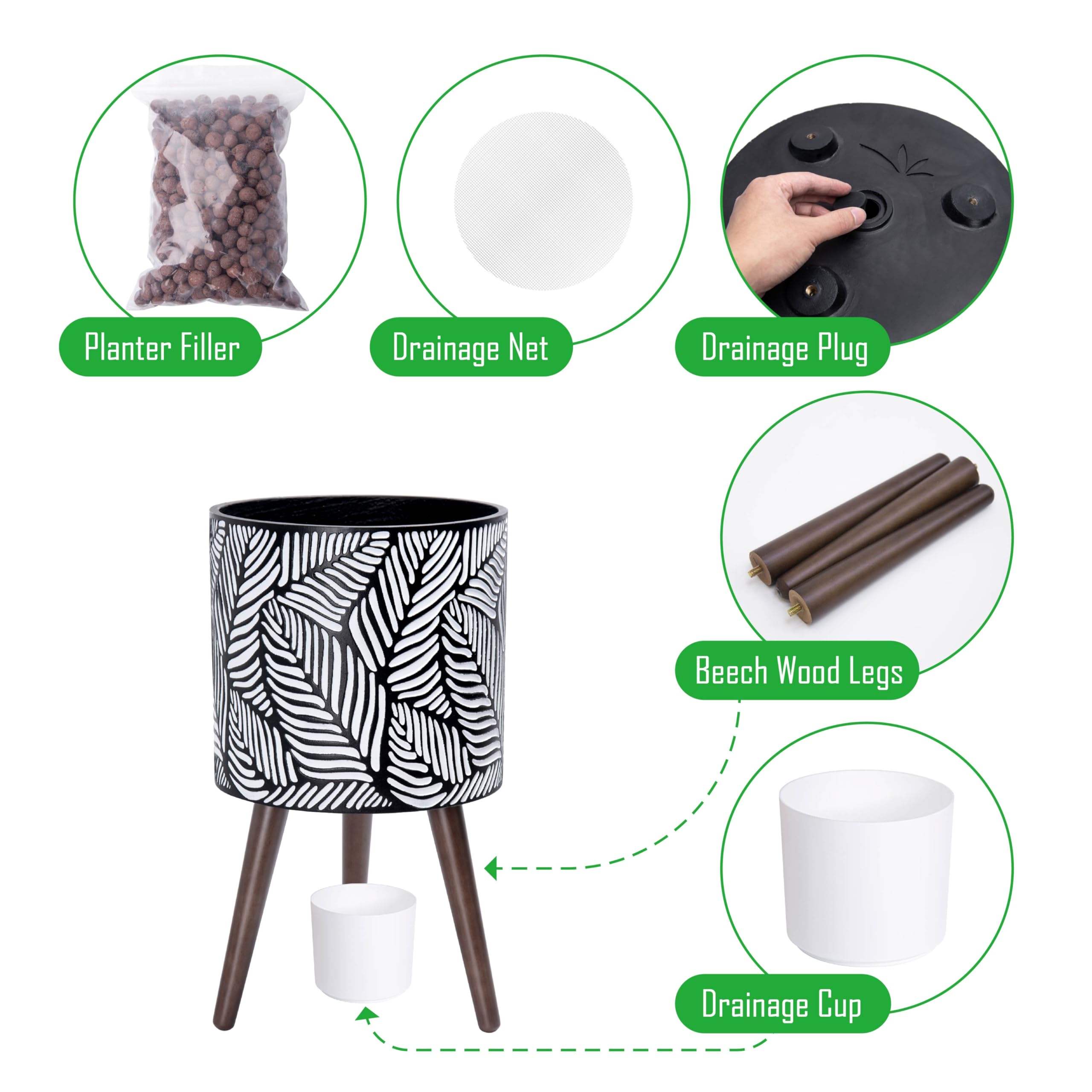 D'vine Dev Blumentopf Mit Ständer für Innenbereich, 44,5 cm Höhe, für Zimmerpflanzen, Mit Abflussloch und Stöpsel, 27,9 cm Medium