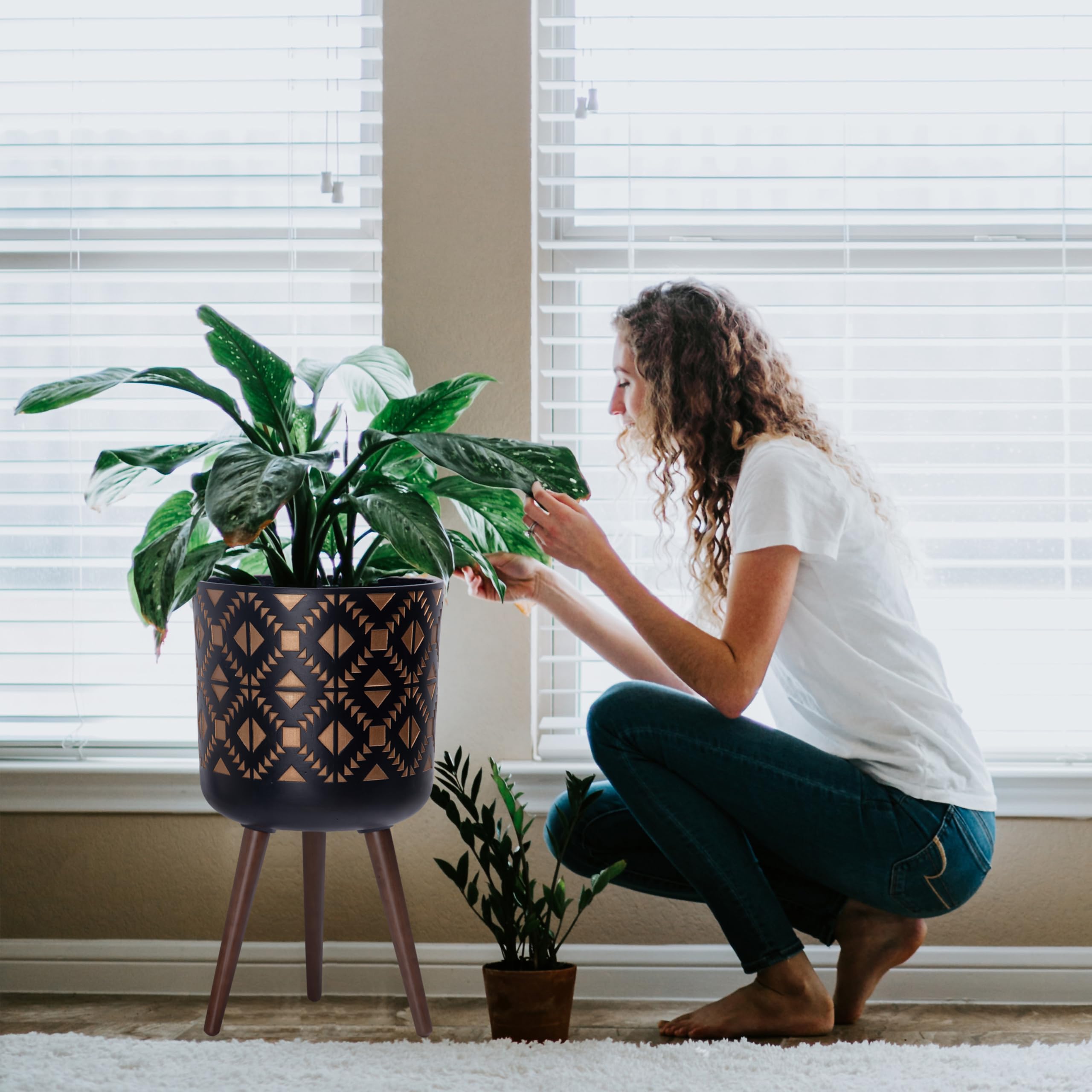 D'vine Dev 88-G-C-6 Pflanztopf mit Ständer, Mitte des Jahrhunderts hoher Blumentopf mit Beinen für Zimmerpflanzen, Bronze/Schwarz, 30,5 cm