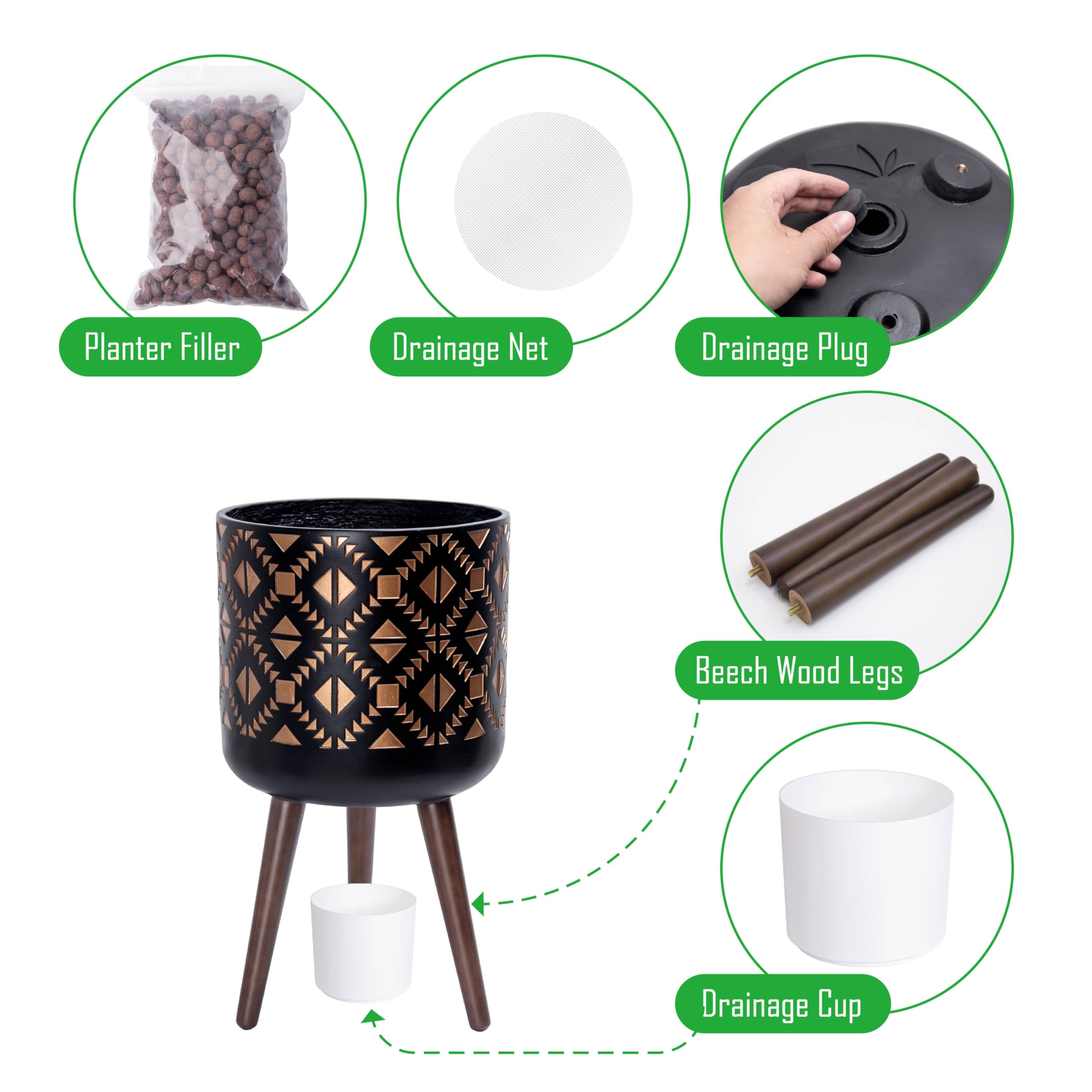 Verschönern Sie Ihre Zimmerpflanzen mit dem vielseitigen und stilvollen D'vine Dev Pflanztopf mit Ständer. Mit einem modernen Design aus der Mitte des Jahrhunderts kombiniert dieser Übertopf handgefertigten Fiberclay mit einem stabilen Holzständer für eine zeitlose Ästhetik. Erhältlich in verschiedenen Farben und Grössen, geeignet für Pflanzen aller Formen und Räume. Durchdachte Funktionen wie ein Ablaufloch, ein Stöpsel und ein Auffangbecher sorgen für Komfort und Pflanzengesundheit und sind somit die perfekte Wahl für jeden Pflanzenliebhaber.