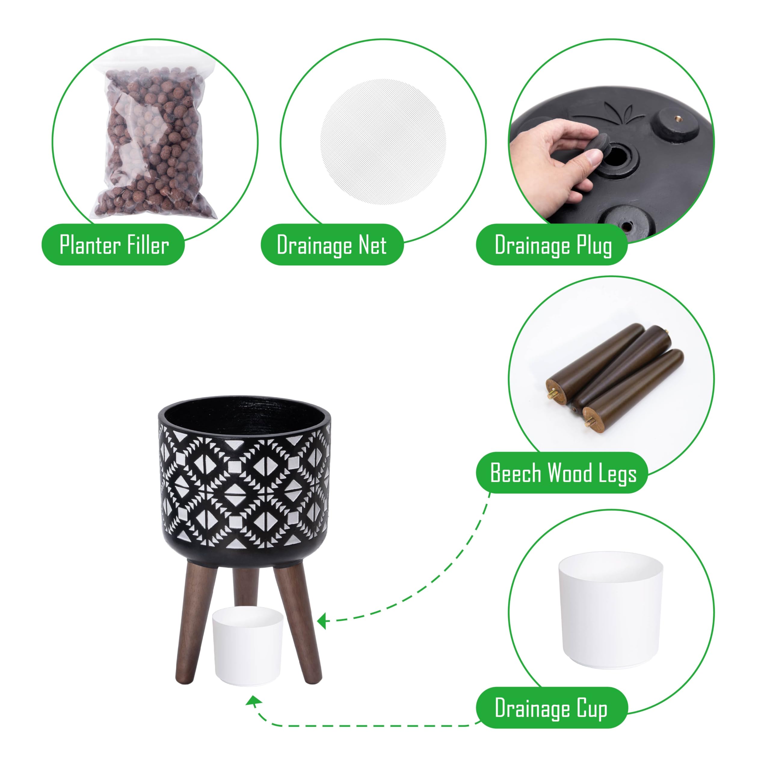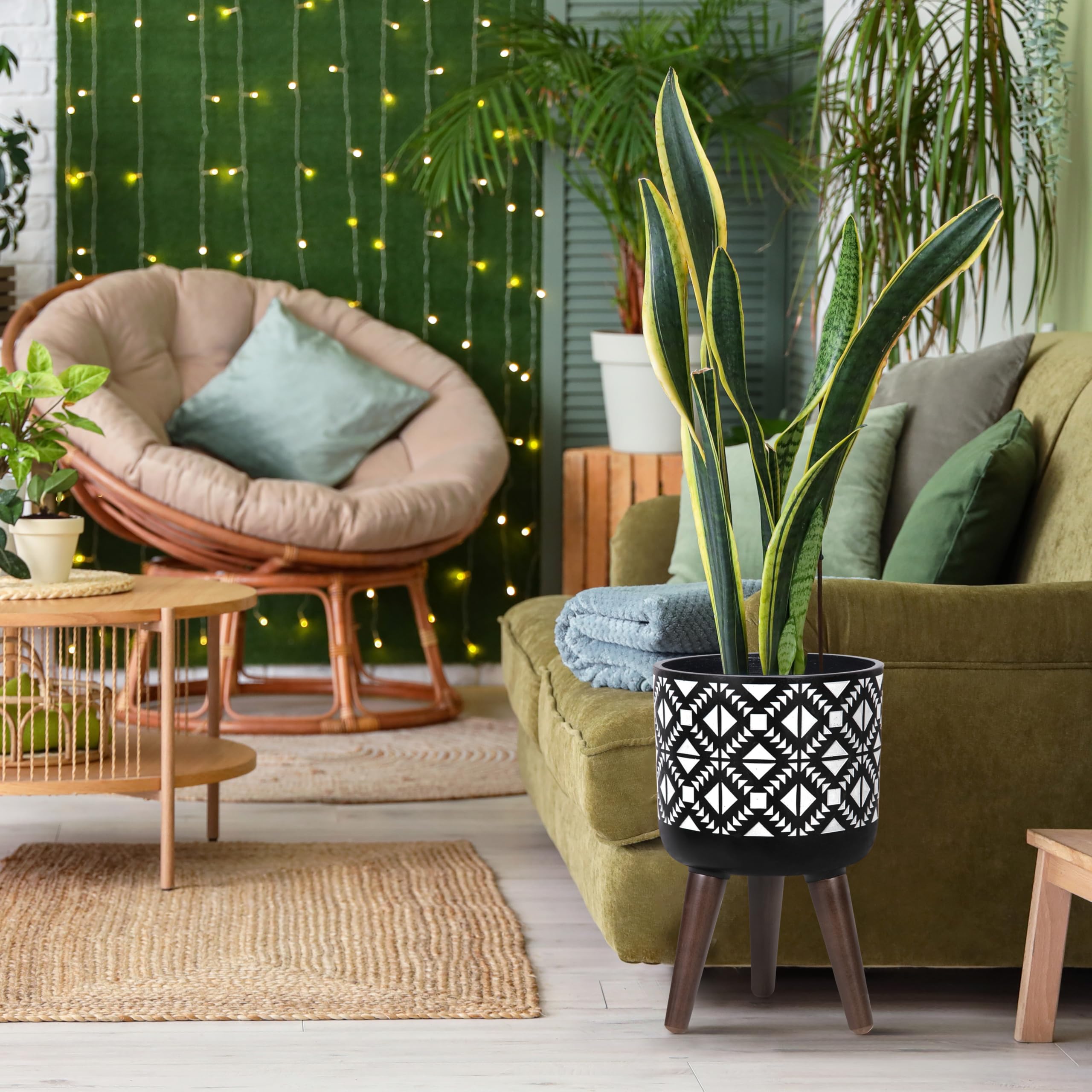 20,3 cm Pflanztopf für den Innenbereich, mit Ständer, geometrischer Übertopf für Pflanzen, klein, grau/weiss.