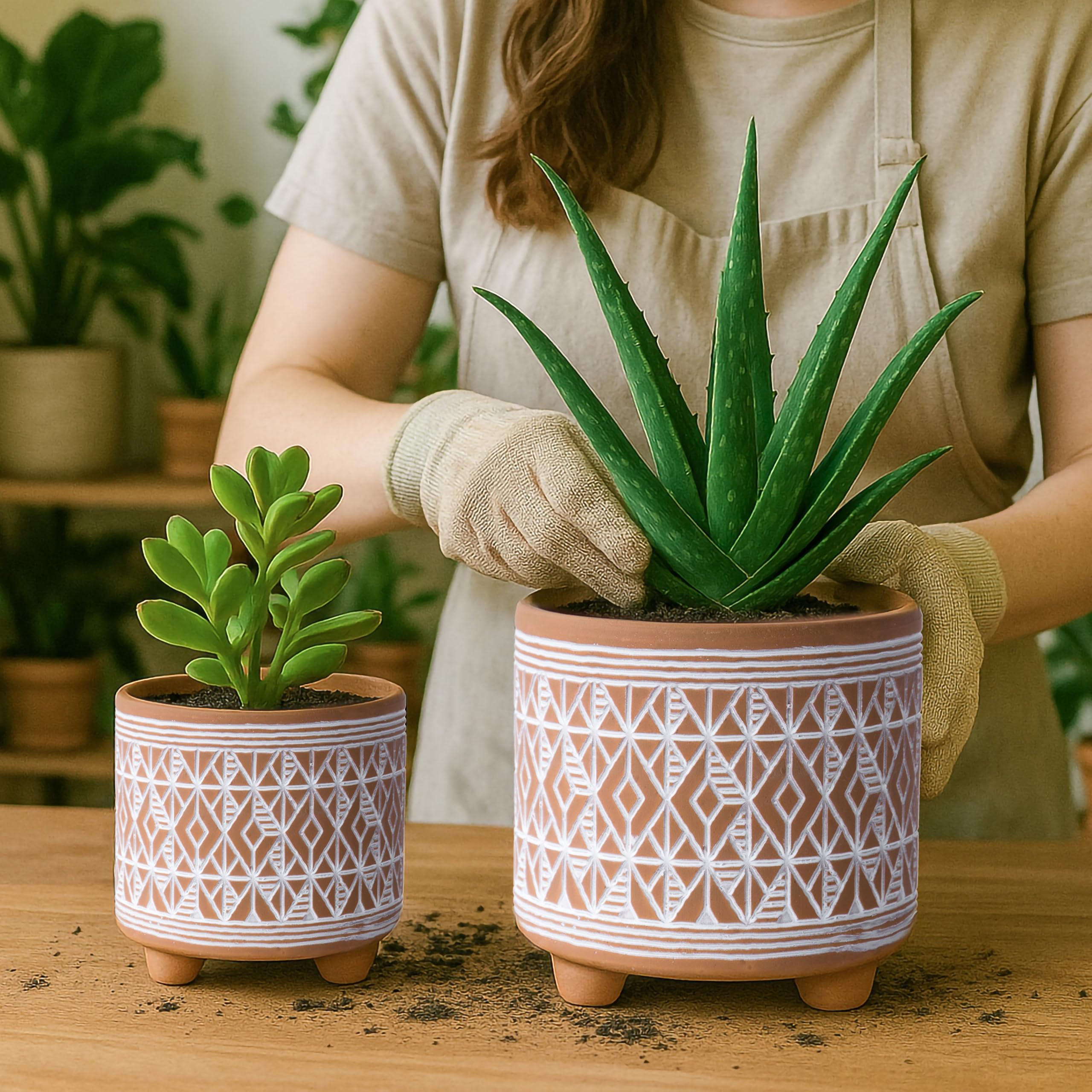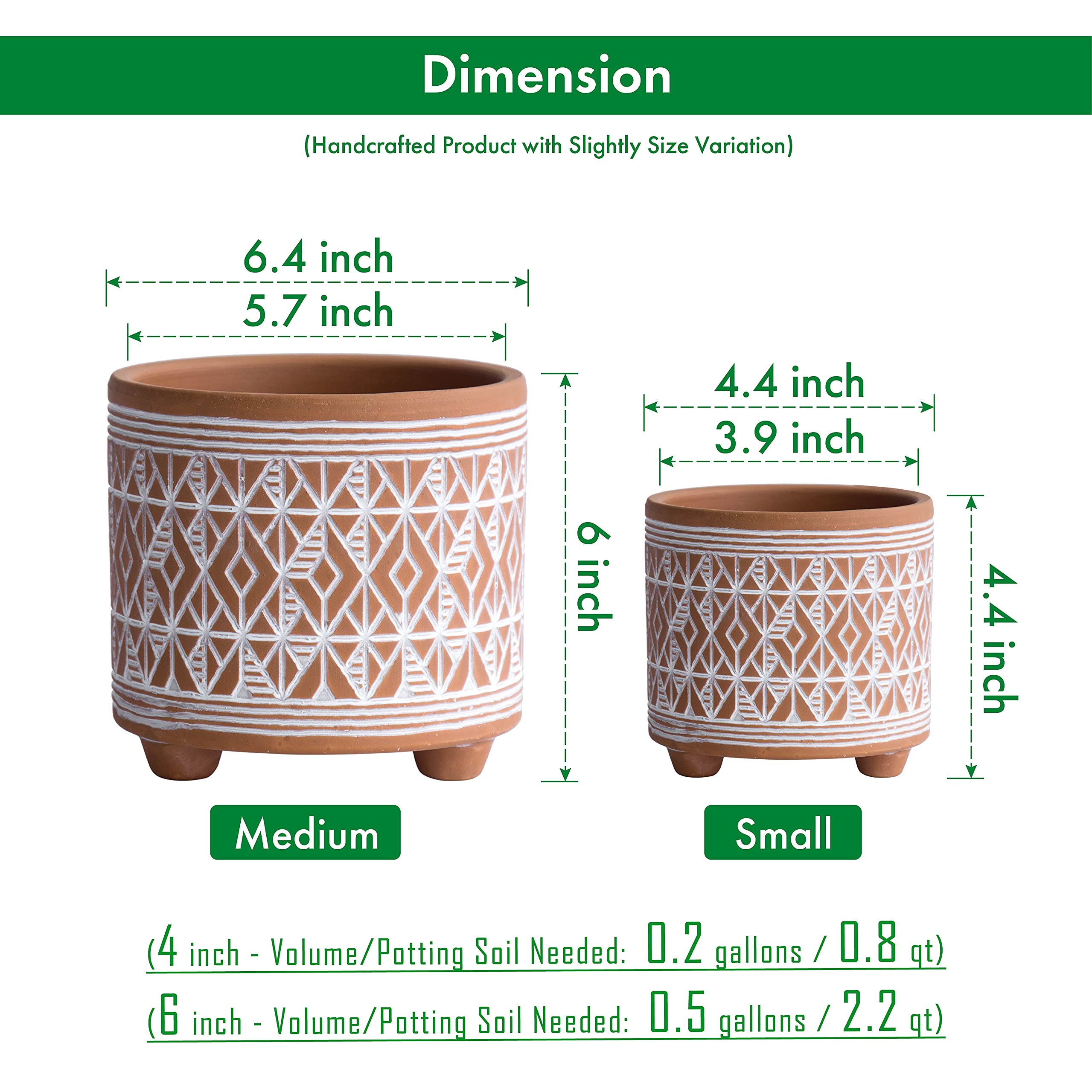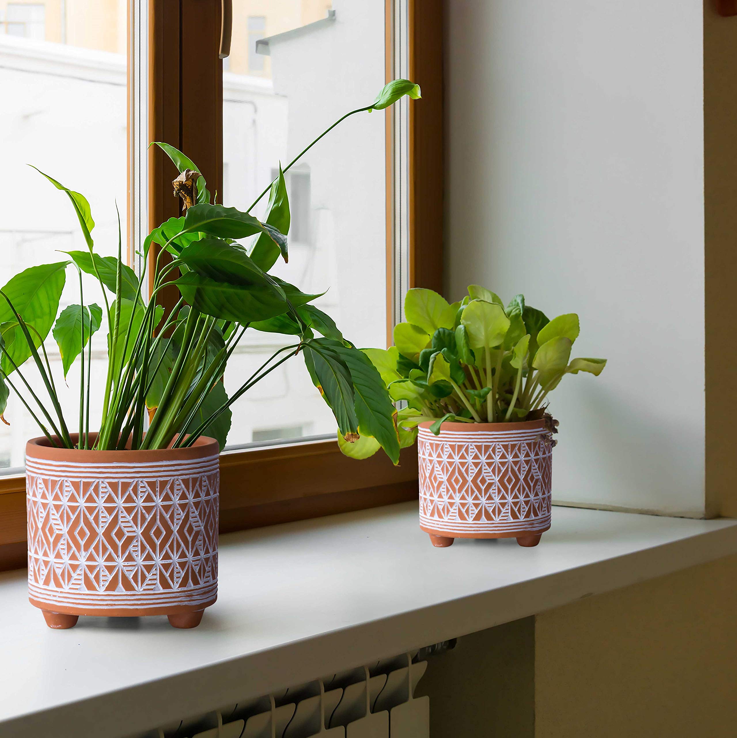 D'vine Dev Set mit 2 Terrakotta-Pflanztöpfen, 10,2 cm & 15,2 cm, Design Pflanztopf mit Drainageloch, Savannen-Webart, Terrakotta/Weiss, 31-953-G-1