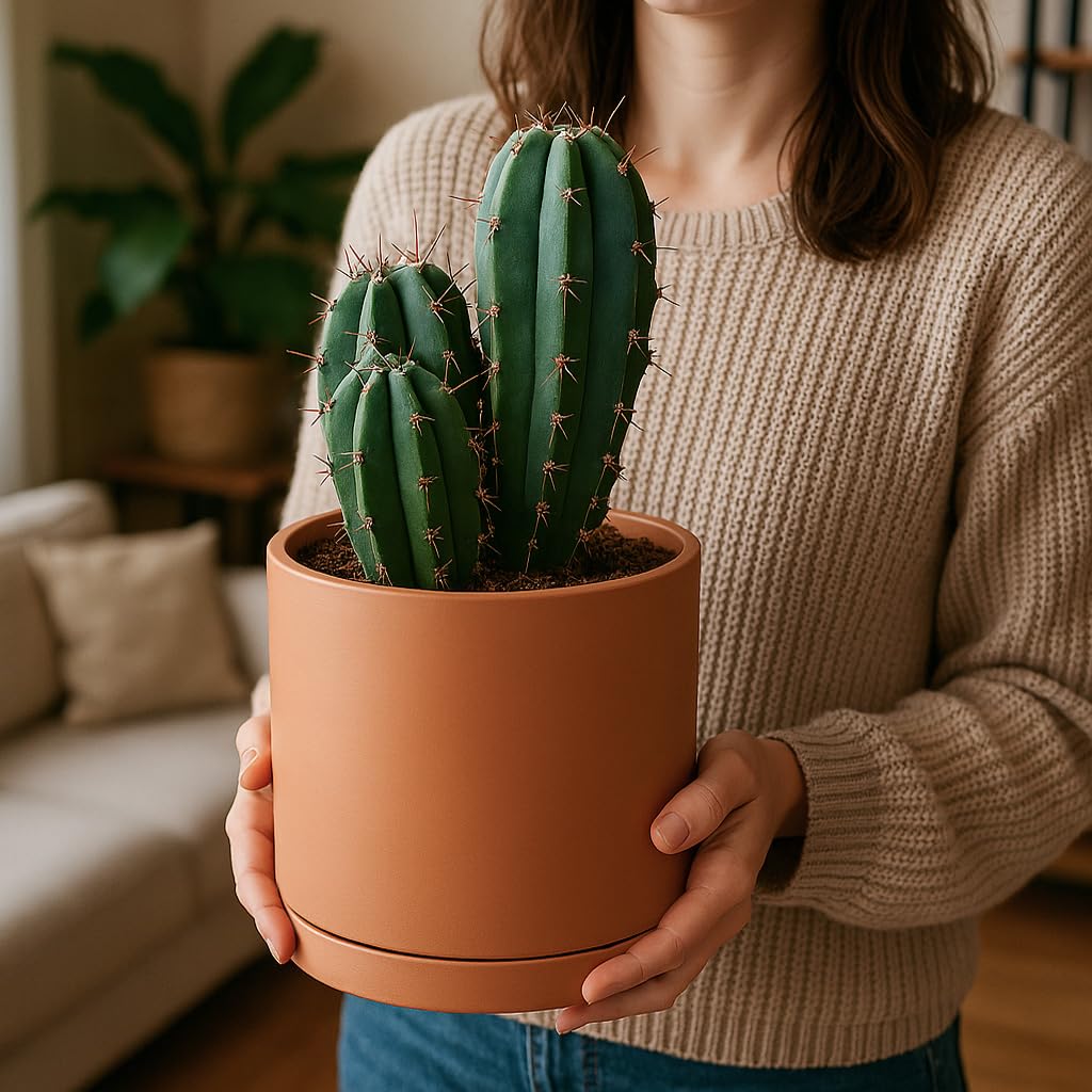 D'vine Dev Terrakotta-Töpfe für Pflanzen, 16,5 cm, 21,6 cm, 25,4 cm, runder Zylinder-Pflanztopf mit Drainage und Untersetzer, 40-T-C-0