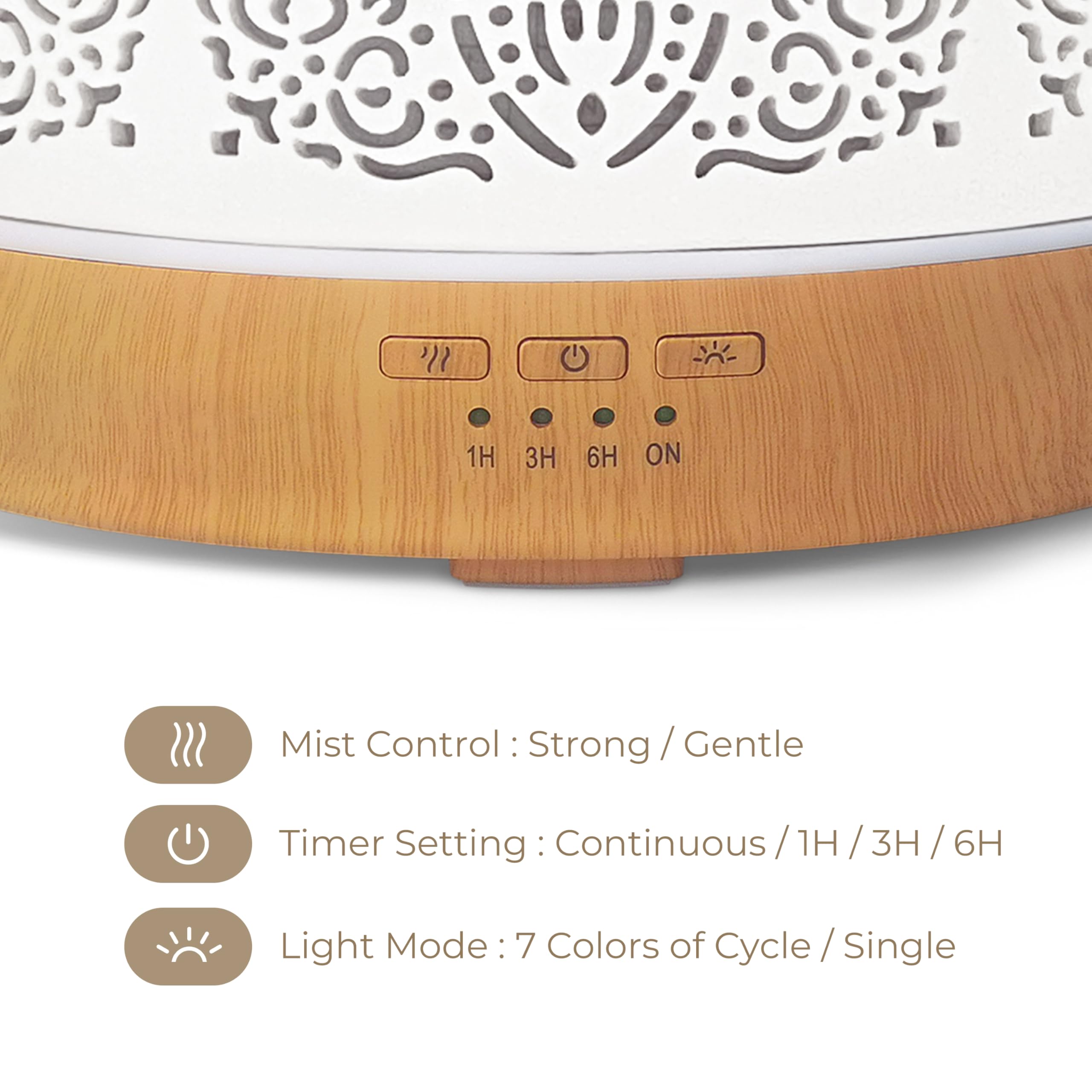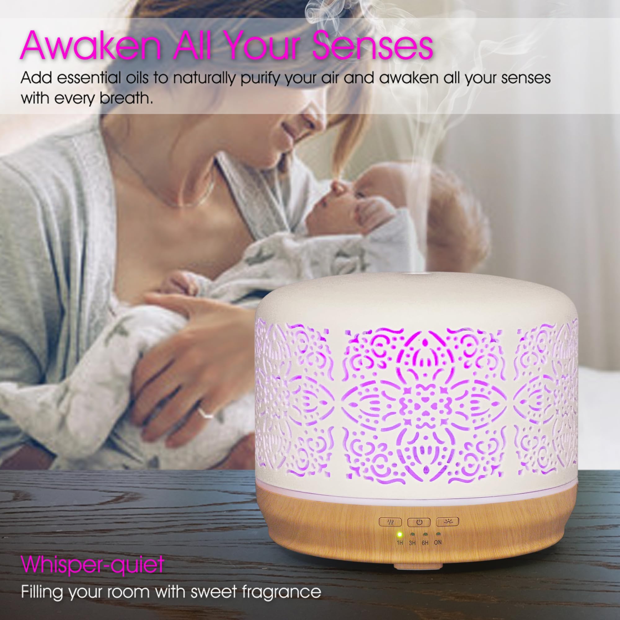 Earnest Living Grosser Aroma Diffusor 500 ml - Weisser Keramik Ultraschall-Diffusor für ätherische Öle, leiser Luftbefeuchter mit Timer, 7 Lichtfarben & Auto-Off - für Schlaf & Home Office