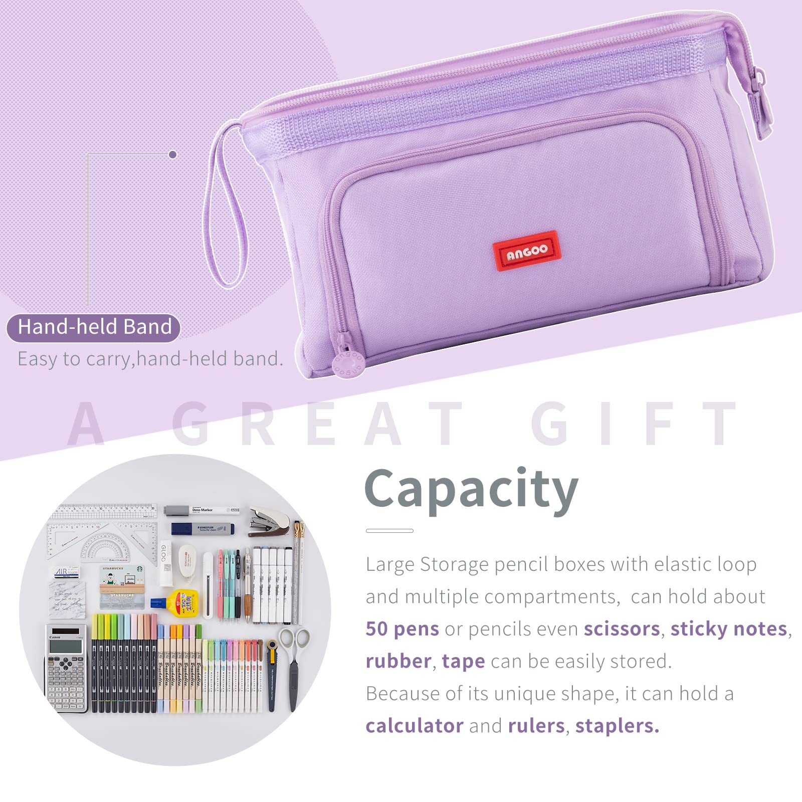 EASTHILL Federmäppchen mit grossem Pencil case Tragbare Stifttasche Tragbare kosmetisches Office High School Organizer College Studentin Mädchen Jugendliche Mädchen-Violett