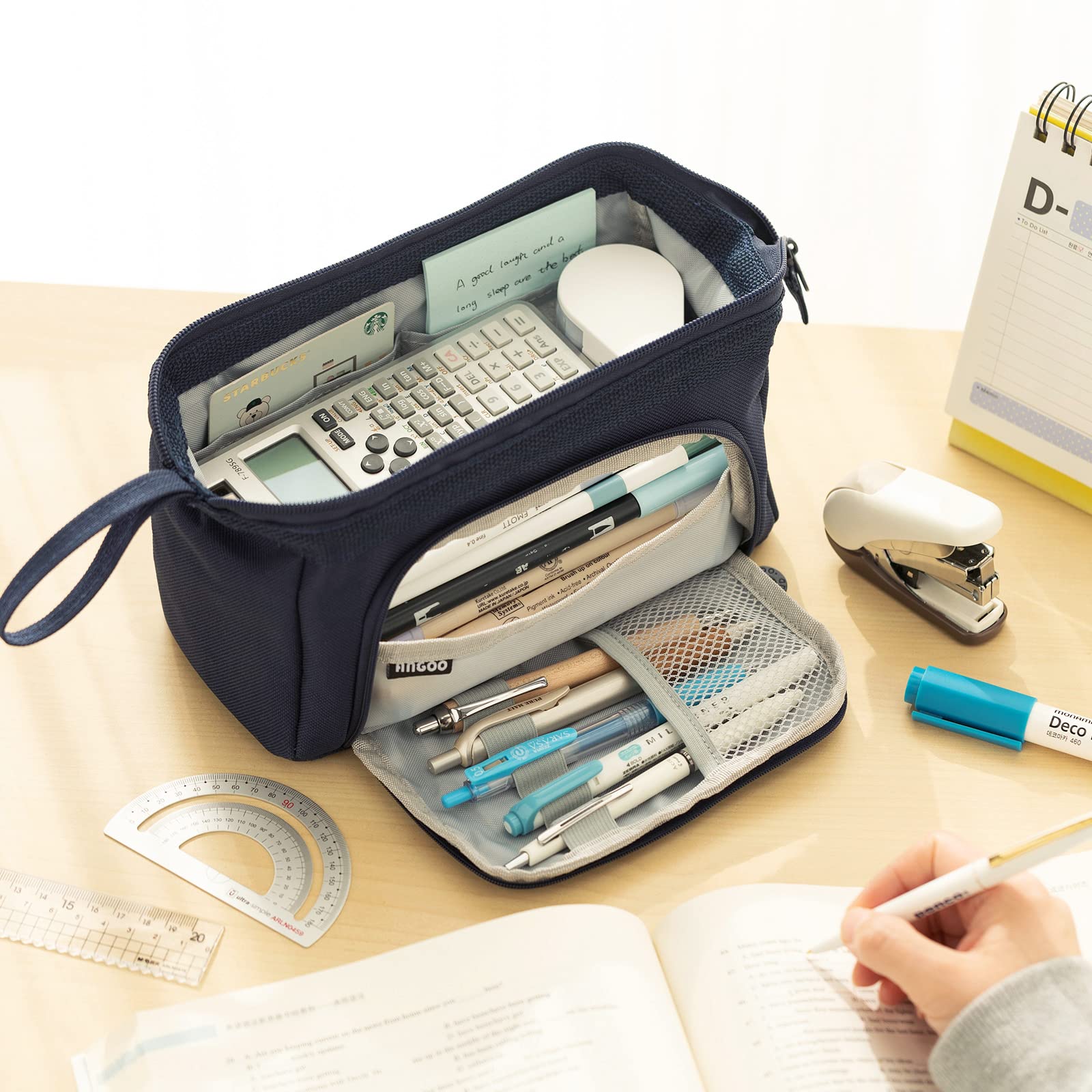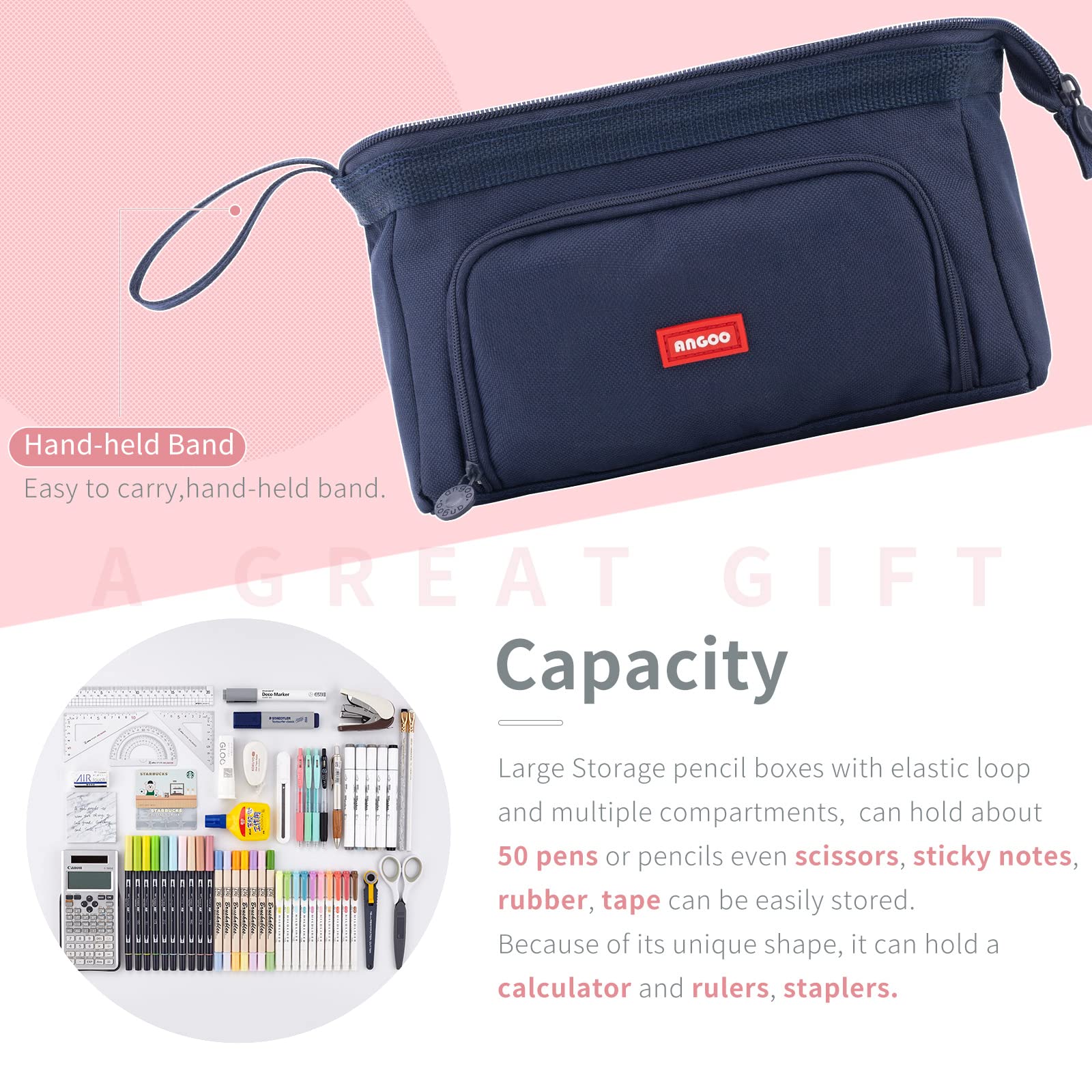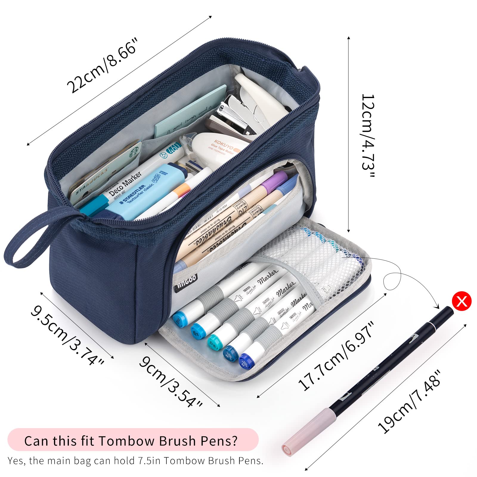 EASTHILL Federmäppchen mit grossem pencil case Tragbare Stifttasche Tragbare kosmetisches Office High School Organizer College Studentin Mädchen Jugendliche Mädchen Erwachsene-Dunkelblau