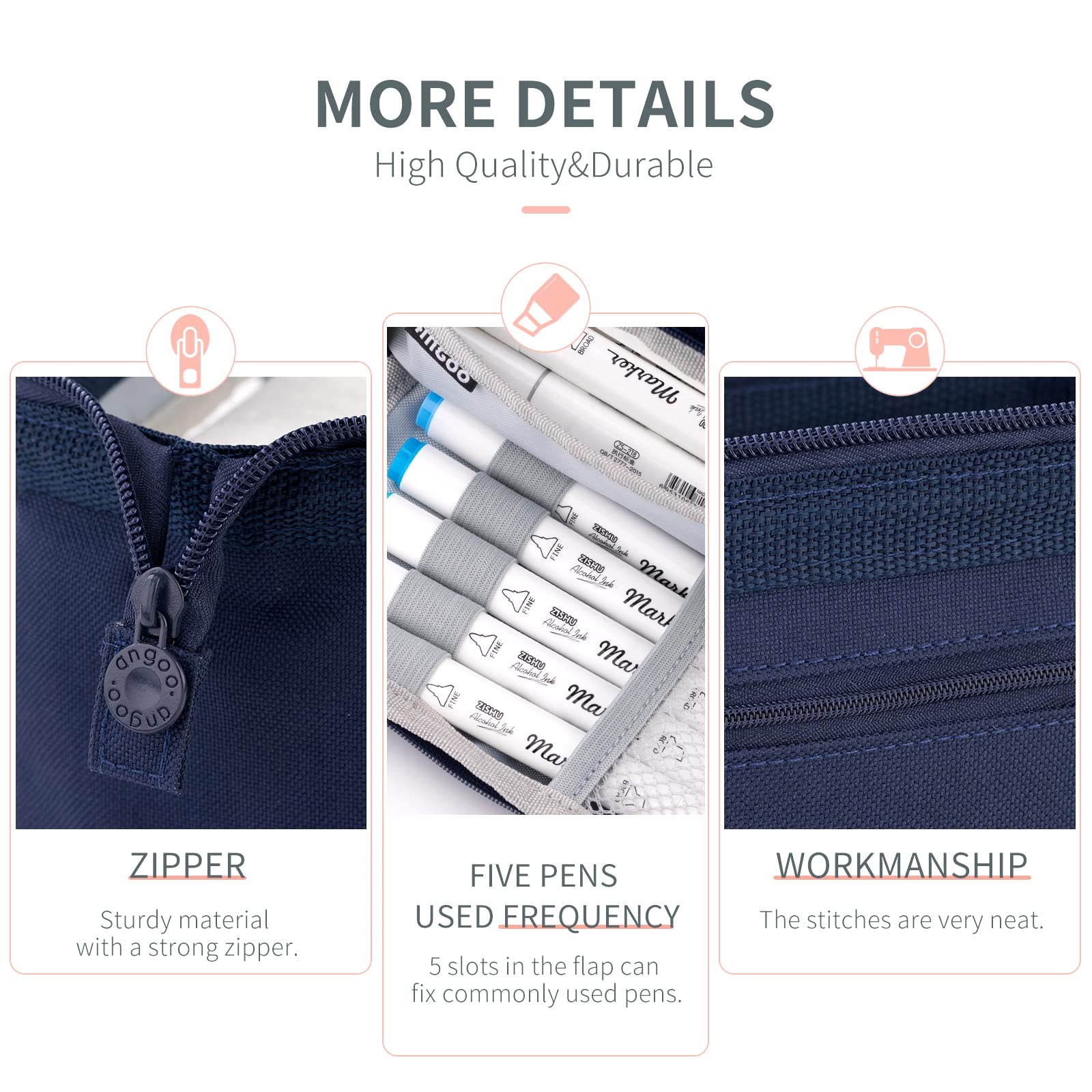 • 【Einzigartiges Design】: Öffnen Sie das Federmäppchen von oben oder die aufklappbare Frontklappe (und die 5 Schlitze in der Klappe können häufig verwendete Stifte befestigen); Ein zusätzlicher Griff an der Seite erleichtert das Tragen der Stiftetasche.