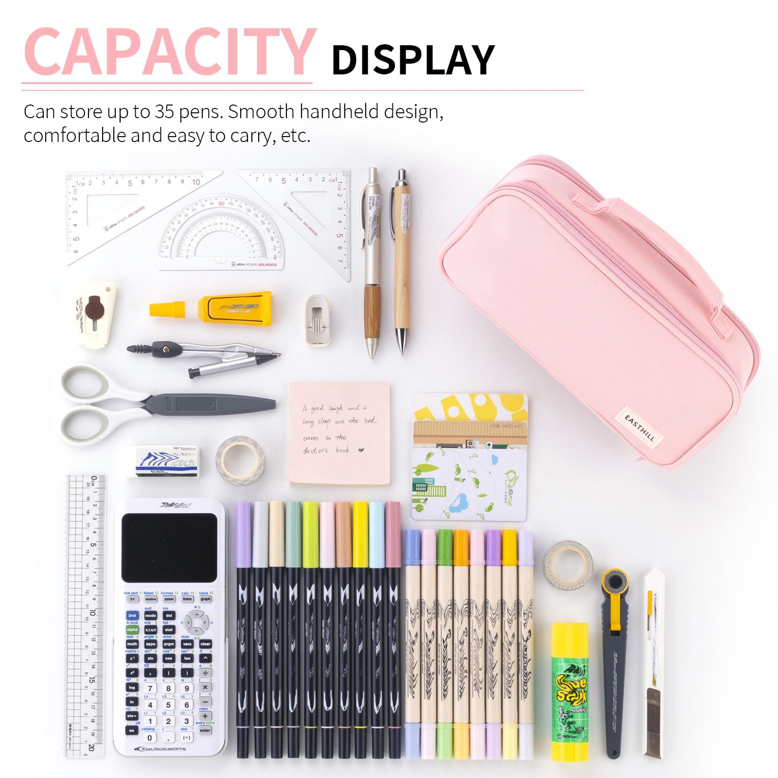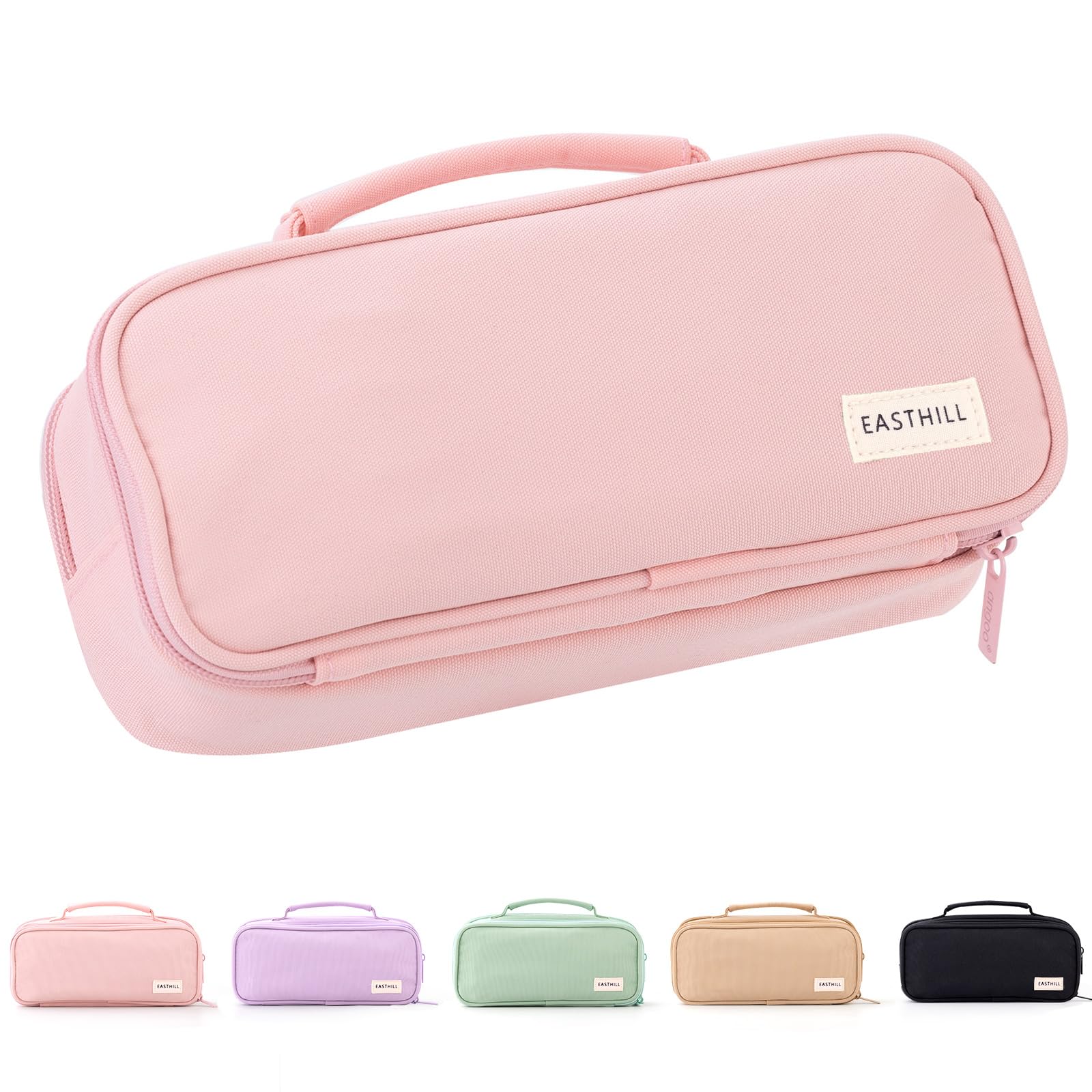 EASTHILL grosse Kapazität Federmäppchen Pen Pouch Organizer Canvas Bleistift Tasche mit Griff Schulbedarf für Mädchen-Rosa