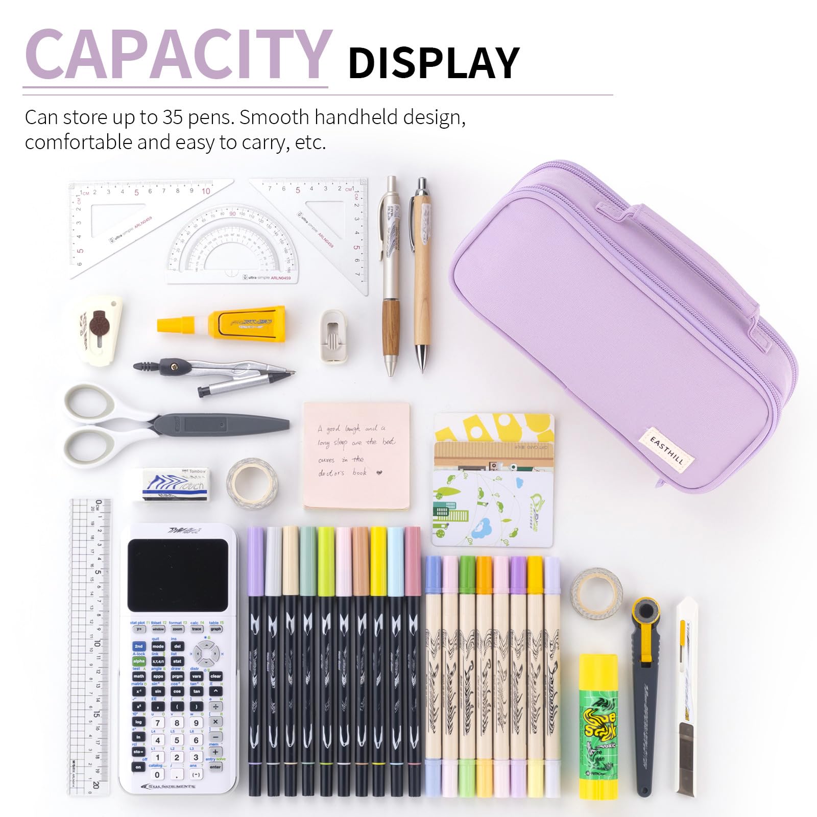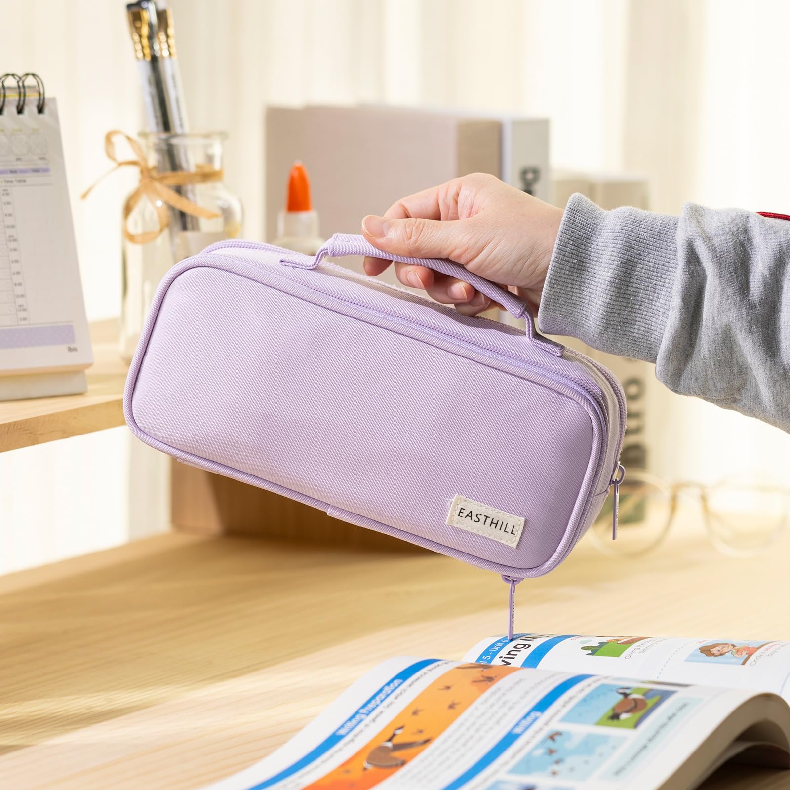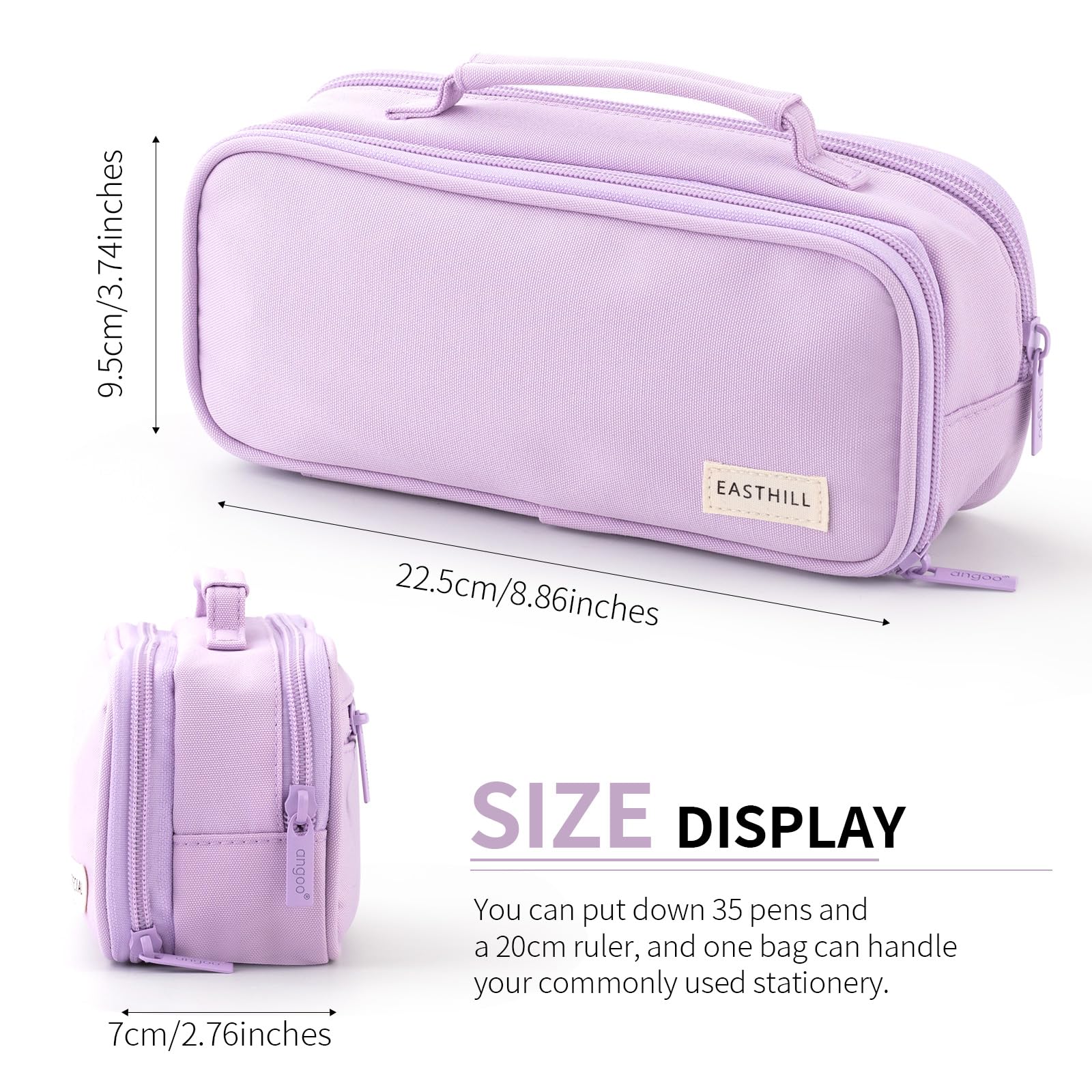 EASTHILL grosse Kapazität Federmäppchen Pen Pouch Organizer Canvas Bleistift Tasche mit Griff Schulbedarf für Mädchen-Lila