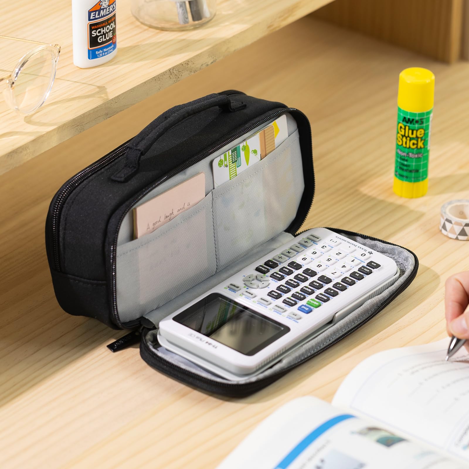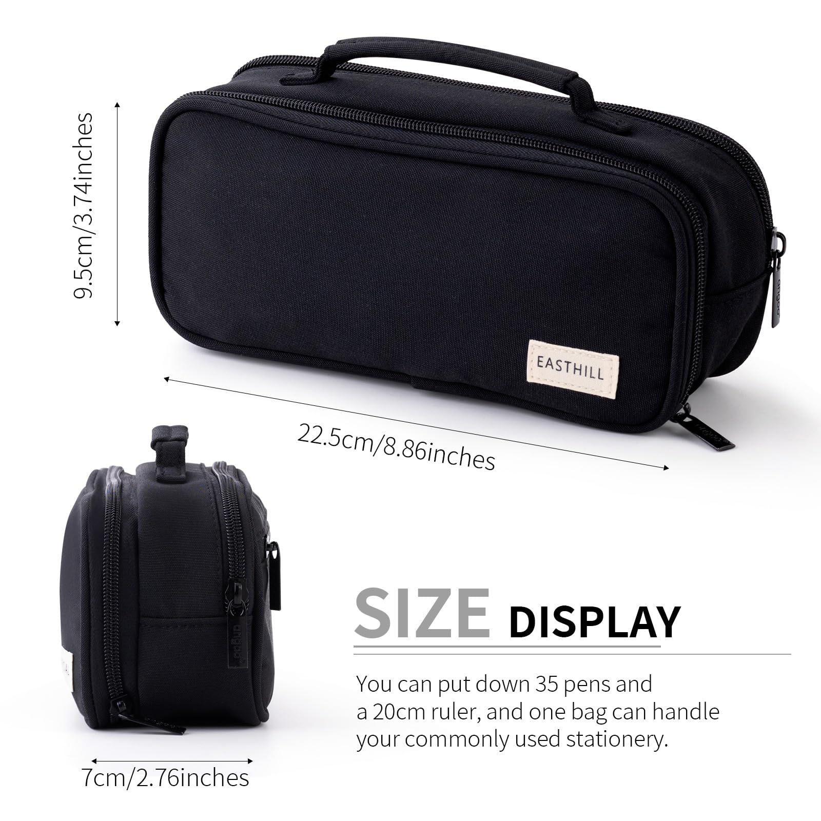 EASTHILL grosse Kapazität Federmäppchen Pen Pouch Organizer Canvas Bleistift Tasche mit Griff Schulbedarf für Mädchen-Schwarz