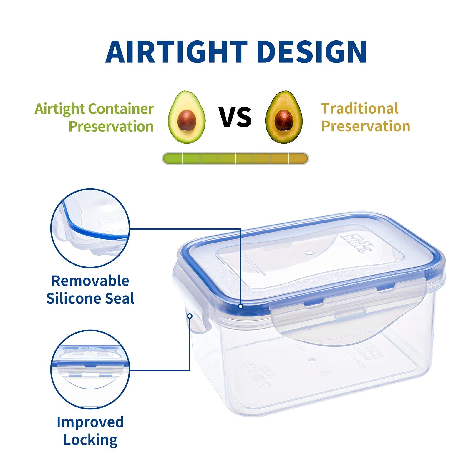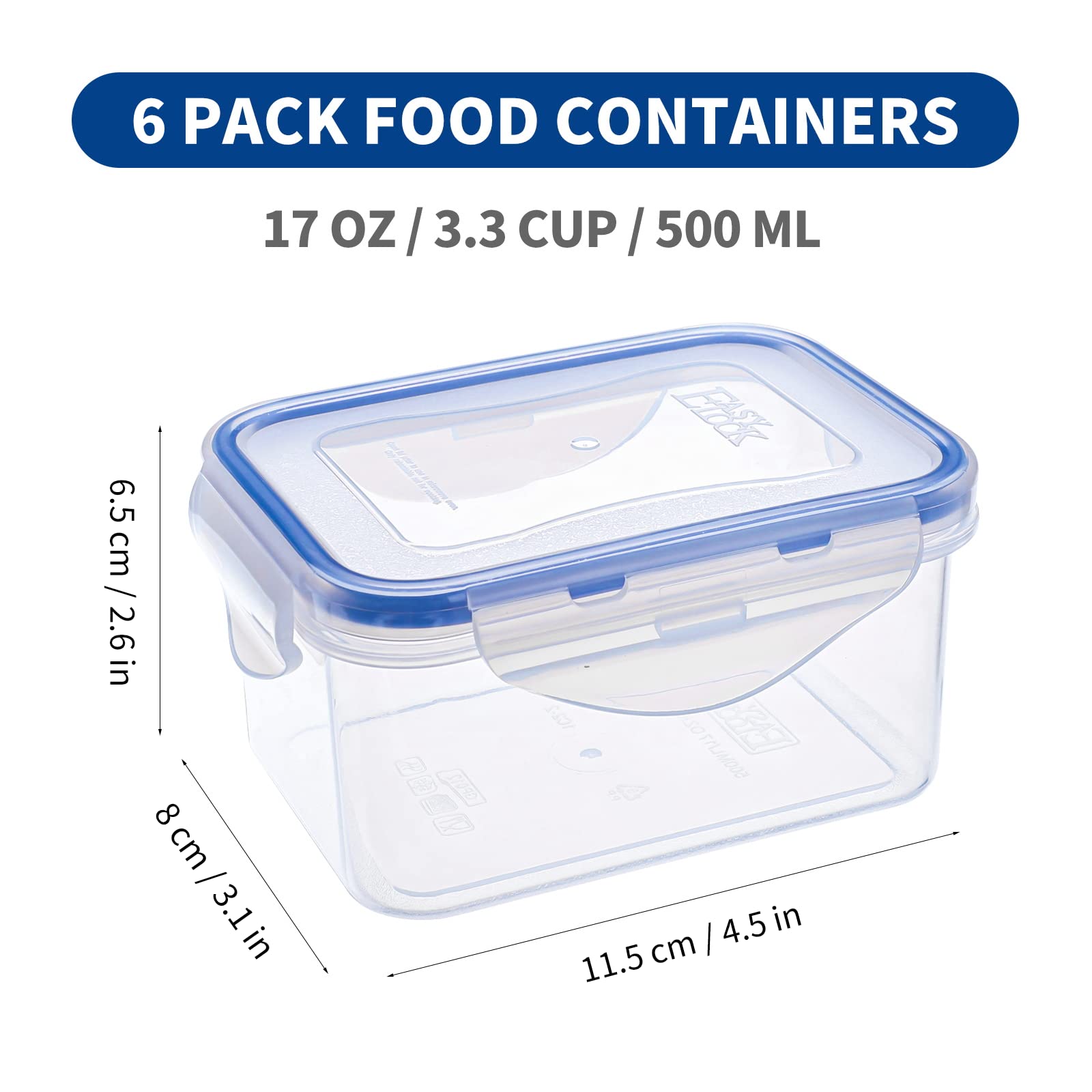 EASYLOCK 6er-Set 500ML Kunststoff Frischhaltedosen Mit Deckel Klein, Meal Prep Boxen, Rechteckig Aufbewahrungsbox Küche, Mikrowellengeschirr, Gefrierdosen 500 ml, Salat To Go Box
