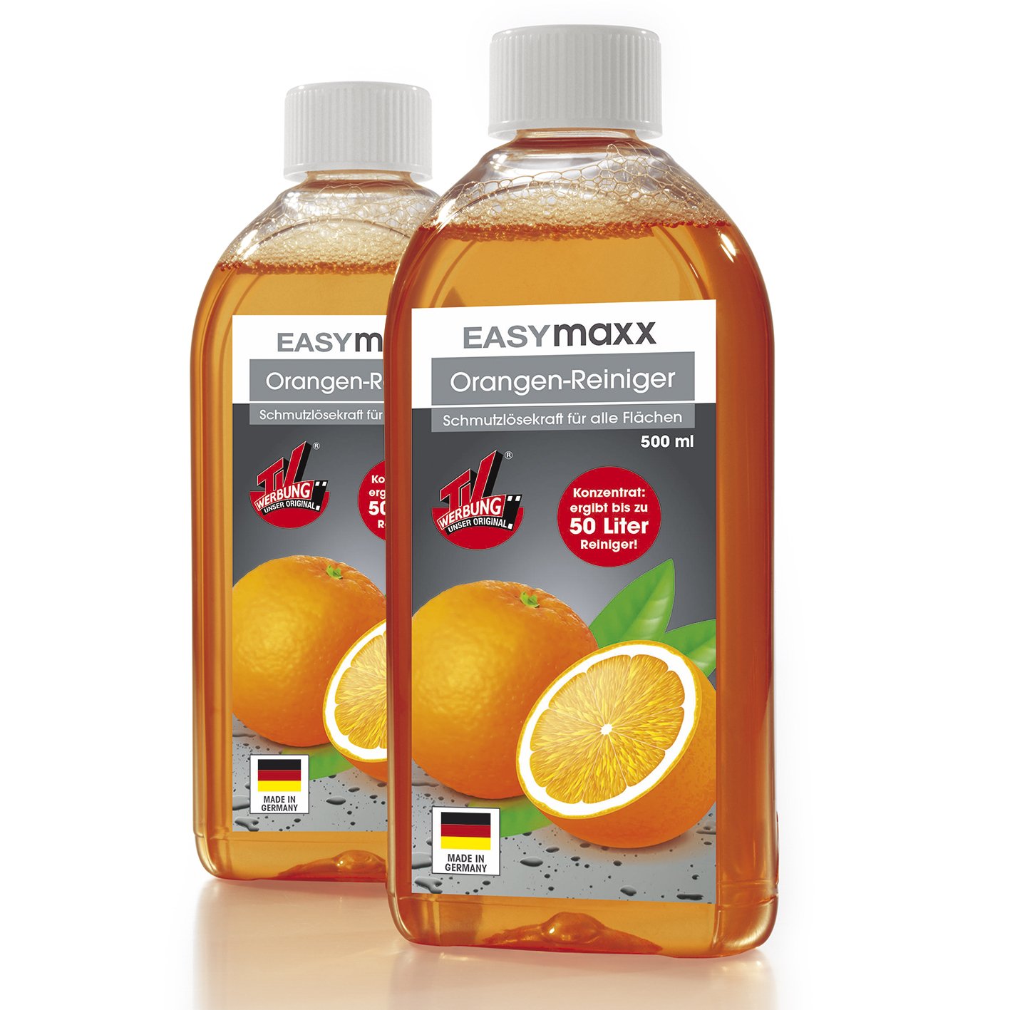 EASYmaxx Reinigungs-Konzentrat Orange 2x500ml Set mit Sprühflasche | Ergibt 100 Liter Allzweckreiniger | Mühelose Reinigung von allen Flächen | Ideal für Kochfelder, Grillroste, Backöfen u.v.m.
