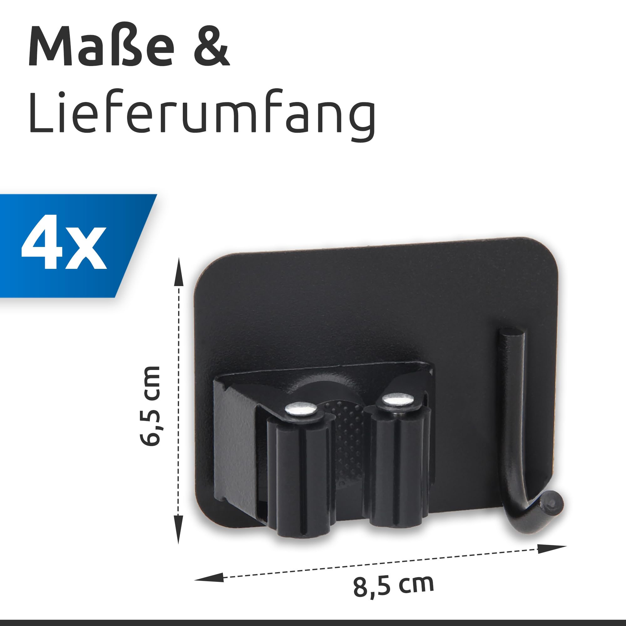 ECENCE 4x Werkzeughalter Selbstklebend mit Besenhalter Wandhalterung für Küche, Waschküche, Badezimmer, Universal Schnellbefestigung, Schwarz