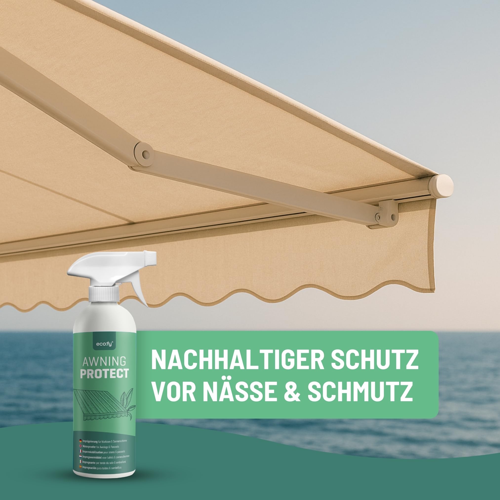 eco:fy Markisen Imprägnierung 2,5L - Imprägnierspray für Markisen, Sonnenschirme & Sonnensegel - Schutz vor Feuchtigkeit & Schmutz - UV-stabil, PFC-frei & biologisch abbaubar - Made in Germany