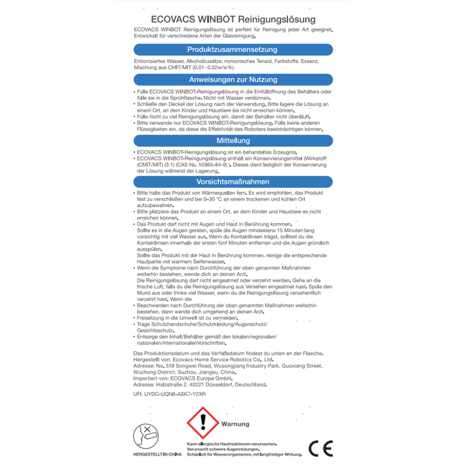 ECOVACS 1L Reinigungslösung für Winbot W1/W1 PRO/W2/W2 OMINI Fensterputzroboter, Originalzubehör (Packung mit 2)
