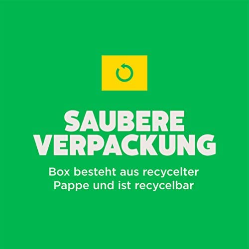 • Saubere Verpackung - Die Box besteht aus recycelter Pappe und ist recycelbar; die Plastikhülle schützt die Tabs für den Geschirrspüler vor Feuchtigkeit und ist ebenfalls recycelbar