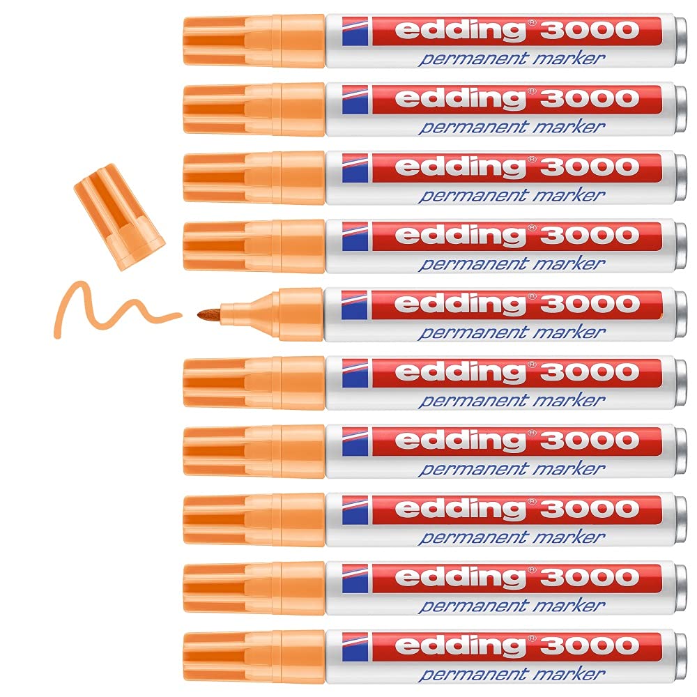 edding 3000 Permanentmarker - hell-orange - 10 Stifte - Rund-Spitze 1,5-3 mm - schnell trocknender Permanent Marker - wasserfest, wischfest - für Karton, Kunststoff, Holz, Metall - Universalmarker
