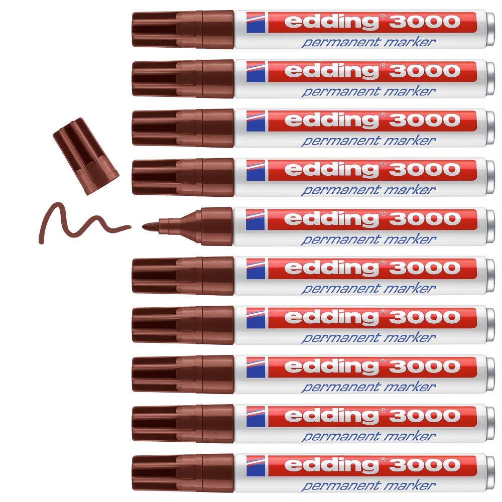 edding 3000 Permanentmarker - braun - 10 Stifte - Rund-Spitze 1,5-3 mm - schnell trocknender Permanent Marker - wasserfest, wischfest - für Karton, Kunststoff, Holz, Metall - Universalmarker