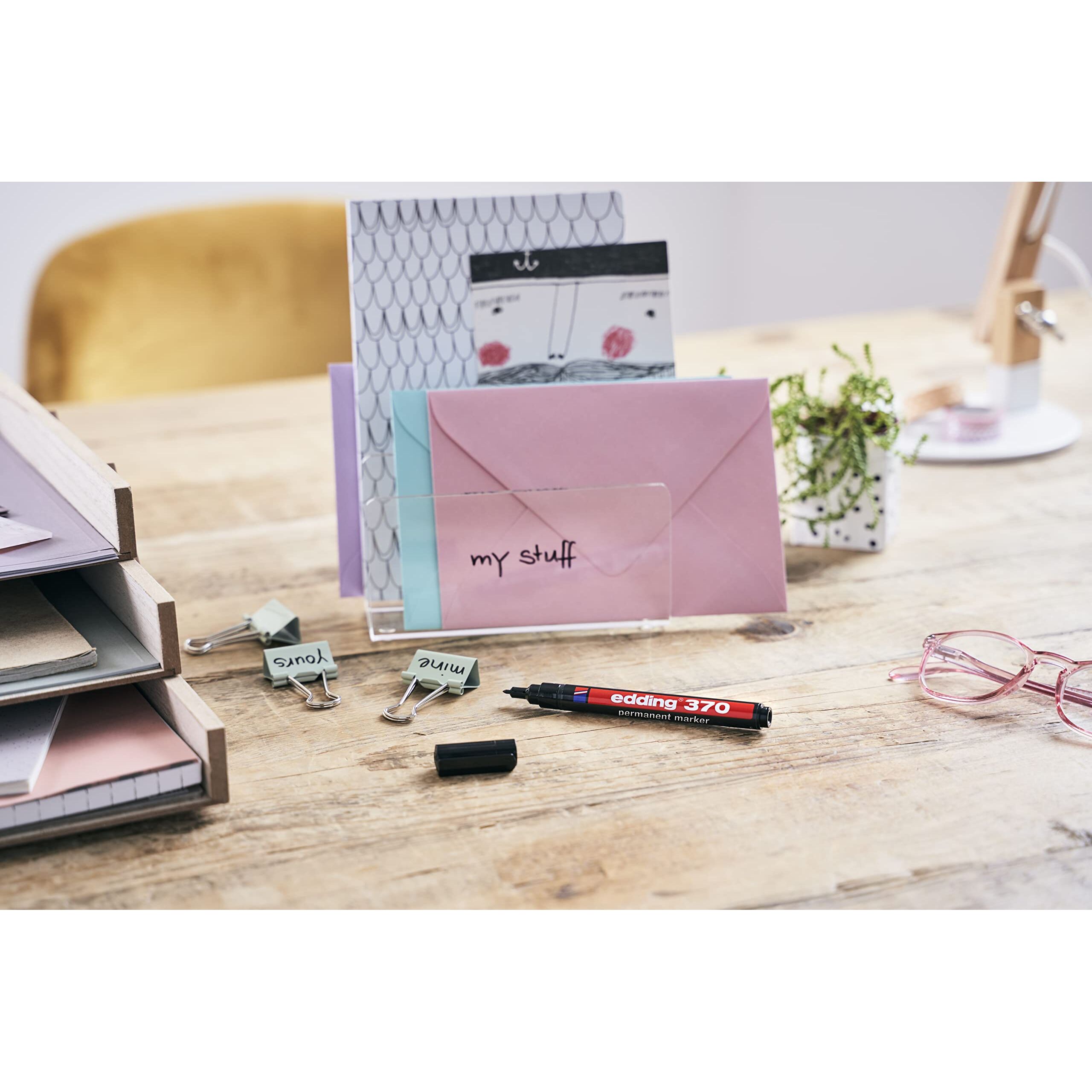edding 370 Permanentmarker - blau - 10 Stifte - feine Rundspitze 1 mm - wasserfest, schnell-trocknend - Multimarker, Universalstift - für Karton, Kunststoff, Holz, Metall, Glas, Stein, Leinwand