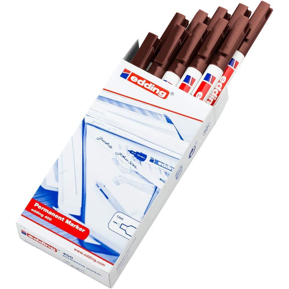 edding 400 Permanentmarker - braun - 10 Stifte - feine Rundspitze 1 mm - wasserfest, schnell-trocknend - wischfest - für Karton, Kunststoff, Holz, Metall, Glas