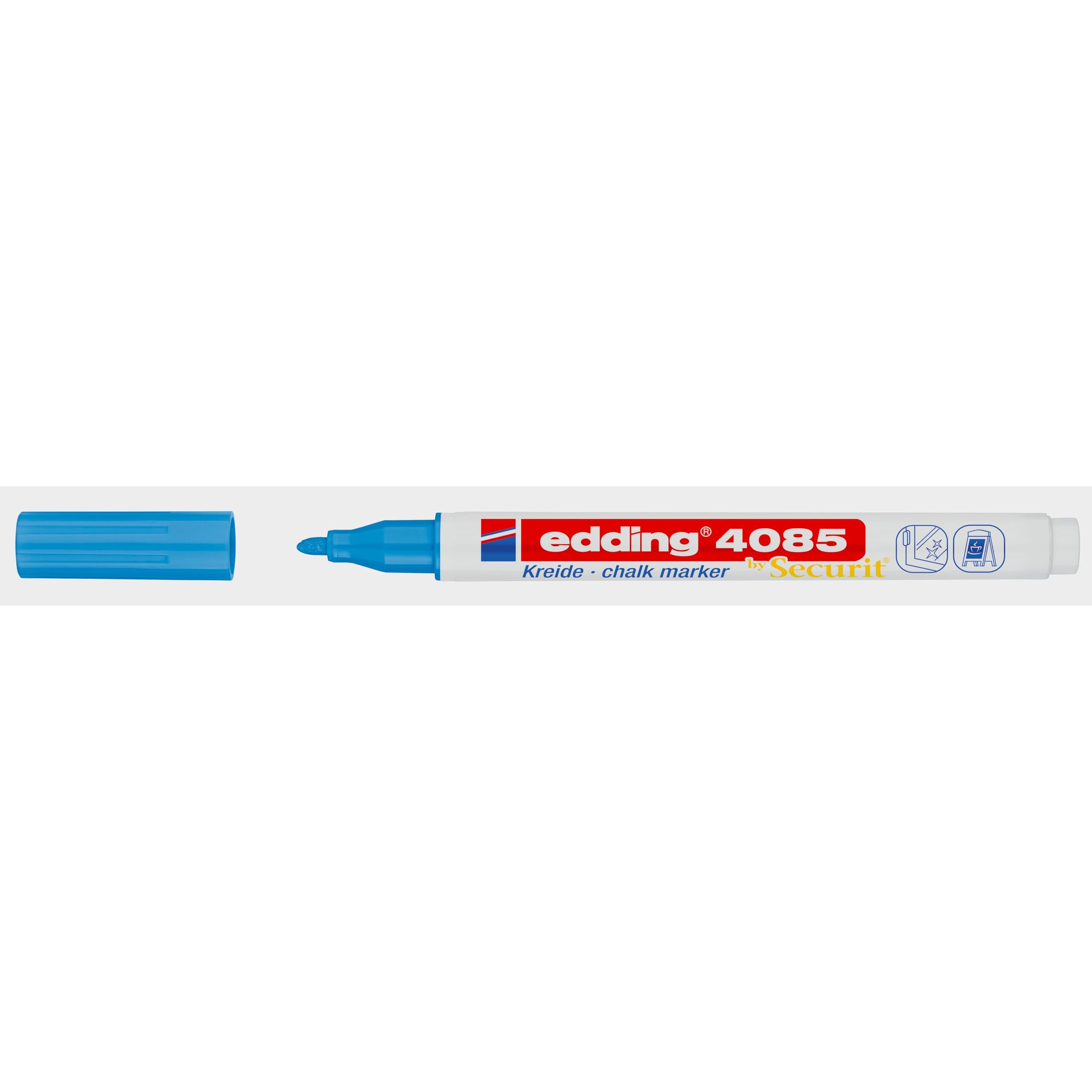 edding 4085 Kreidemarker - hellblau - 1 Kreidestift - Rundspitze 1-2 mm - dünner Kreidestift für Tafel abwischbar - zum Beschriften von Fenster, Glas, Spiegel - Tafelstift mit deckenden Farben