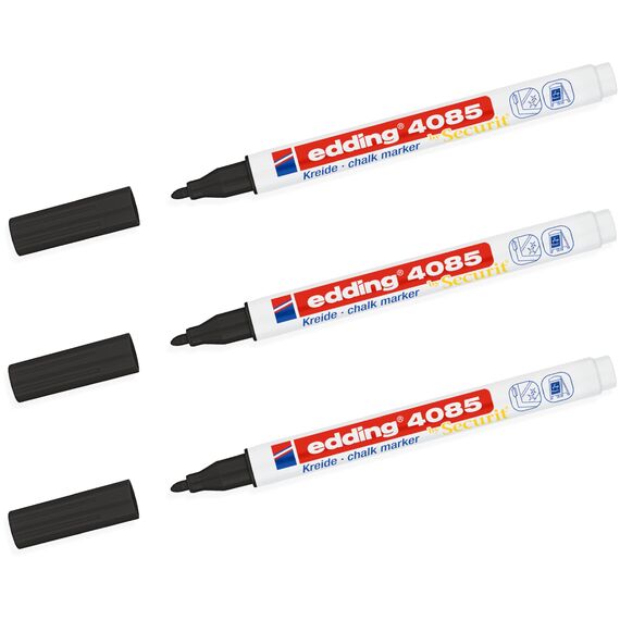 edding 4085 Kreidemarker - Rundspitze 1-2 mm - dünner Kreidestift für Tafel abwischbar - zum Beschriften von Fenster, Glas, Spiegel - Tafelstift mit deckenden Farben (3 Stifte - Schwarz)