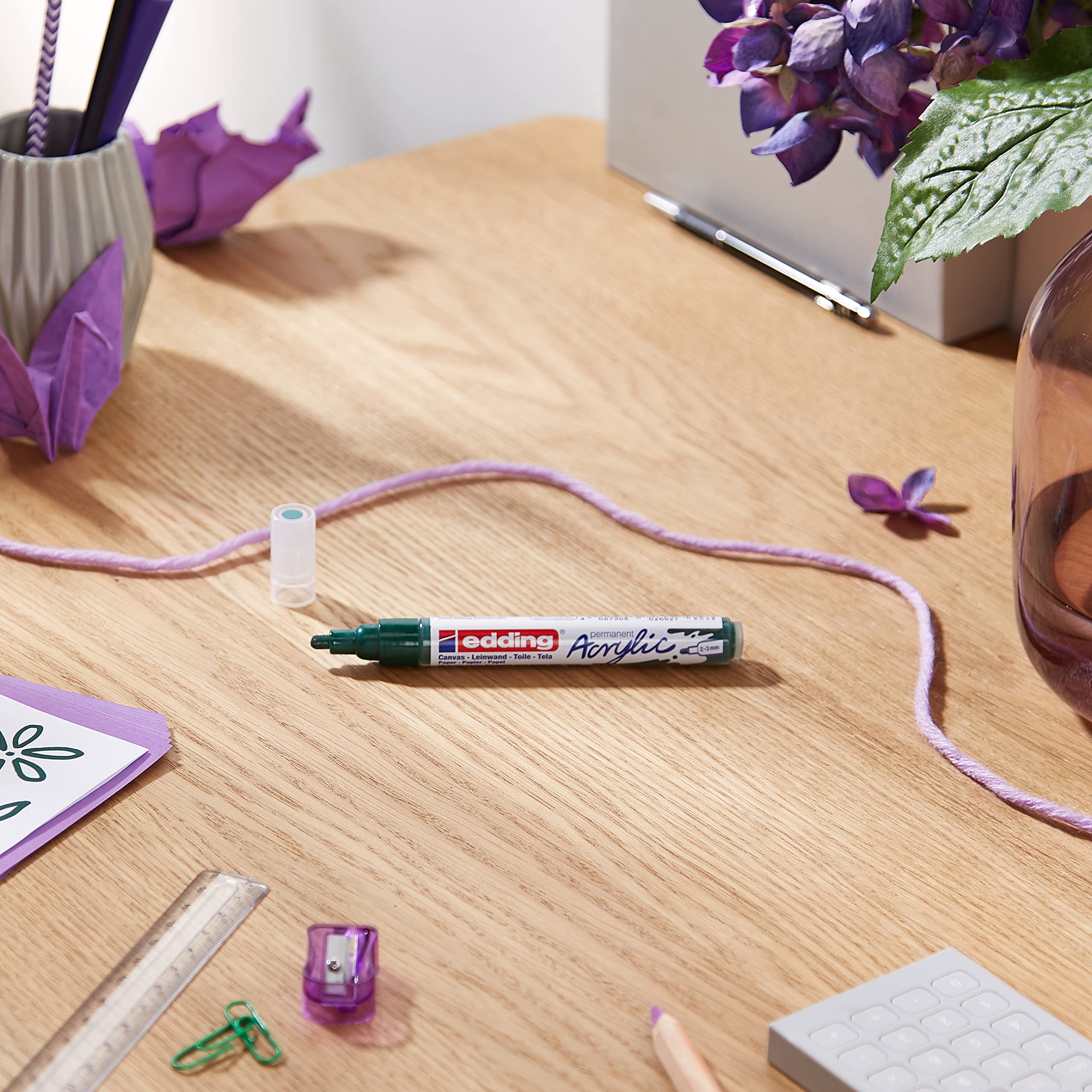Die Acrylmarker sind ein modernes Werkzeug und die perfekte Ergänzung zu jeder Künstleraustattung. Die Acrylfarbe im Markerformat bietet eine einfachere Handhabung als herkömmliche Acryltinten in Tuben. Mit dem Ventilsystem kann die Farbe direkt auf die Oberfläche aufgetragen werden und ein gleichmässiger Farbfluss wird gewährleistet. Präzise und sauber in der Anwendung für unkomplizierte, spontane Kreativität. Die mittlere Schriftbreite gewährleistet präzise Linienführungen für eine vielzahl an Motiven. Aufwendige grosse Kunstwerke auf Leinwände sind genauso möglich wie eine schnell gemalte Grusskarte. Der Kreativität ist keine Grenze gesetzt. Kleiner Tipp: Die Farben können miteinander gemischt oder aufeinander gearbeitet werden. Möglich ist auch die Acrylmarker zusammen mit den edding 5200 Permanentspray zu nutzen. Dafür zunächst bspw. die Fläche der Leinwand mit dem Spray besprühen. Nach dem Trocknen kann mit den Acrylmarker drauf gemalt werden. Die Farben beider Produktgruppen sind farblich perfekt aufeinander abgestimmt. Vor der ersten Nutzung bitte den Marker wie folgt aktivieren: Marker mit geschlossener Kappe schütteln, anschliessend die Kappe abnehmen. Marker mit der Spitze nach unten, beispielsweise auf einem Stück Testpapier, anpumpen. Vorsichtig auf- und abpumpen, bis die Farbe die Spitze füllt. Der Marker ist jetzt anwendungsbereit. Die Kappe kann am Ende des Markers aufgesteckt werden. Waagerecht und bei Raumtemperatur (5-30 °C) lagern. Hochwertiges Markenprodukt. Made in Germany.