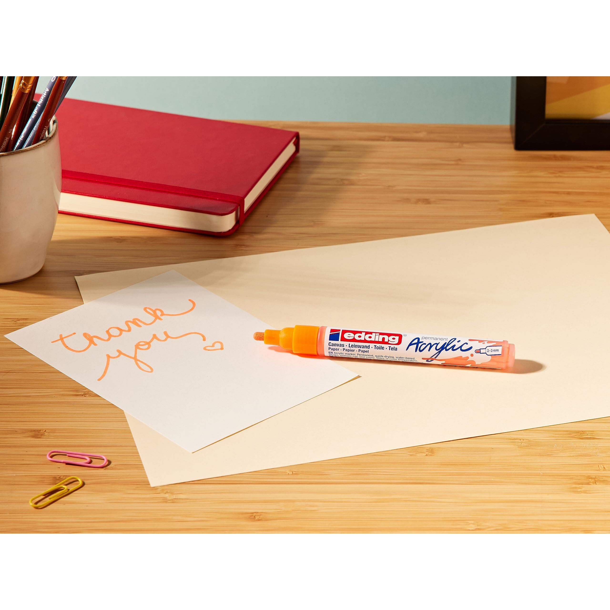 edding 5100 Acrylmarker medium - neon-orange - 1 Acrylstift wasserfest - mittlere Rundspitze 2-3 mm - Acryl Farben zum Malen auf Leinwand, Malpapier und Holz - Acrylstifte für Steine