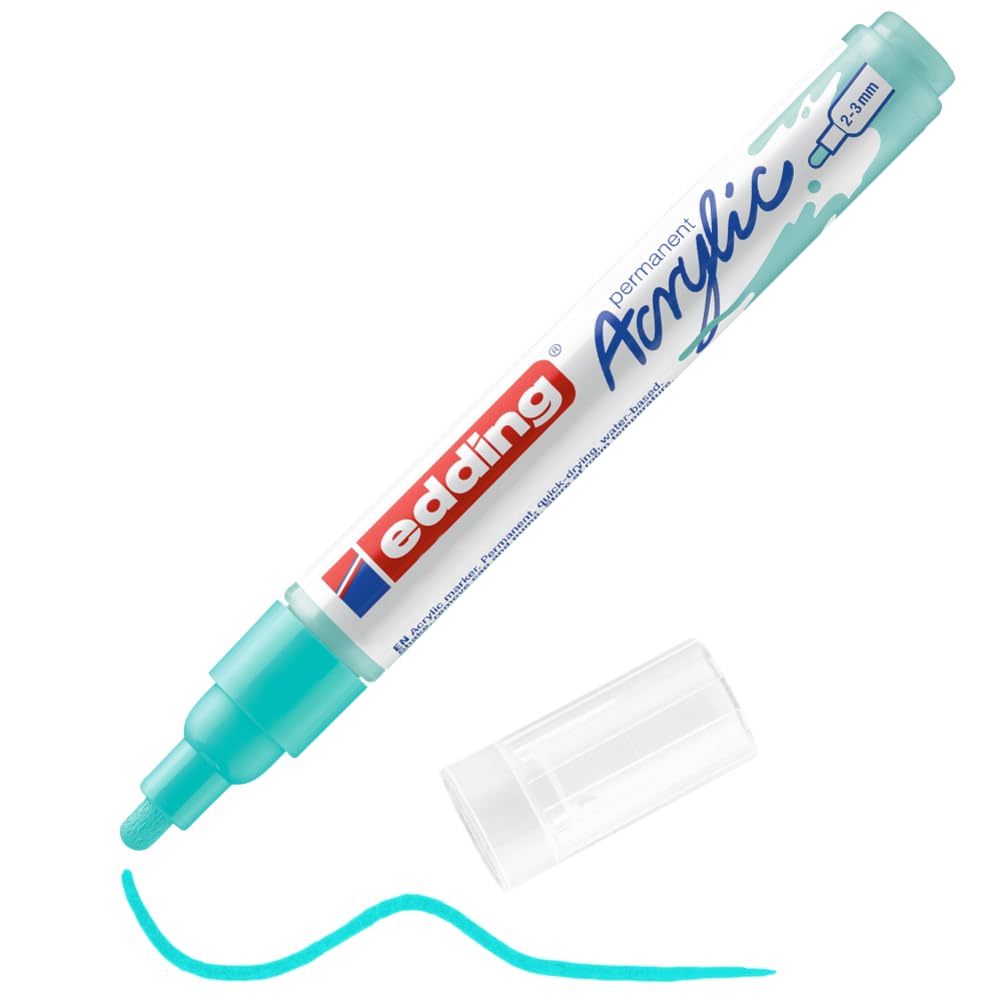 edding 5100 Acrylmarker medium - türkis - 1 Acrylstift wasserfest - mittlere Rundspitze 2-3 mm - Acryl Farben zum Malen auf Leinwand, Malpapier und Holz - Acrylstifte für Steine