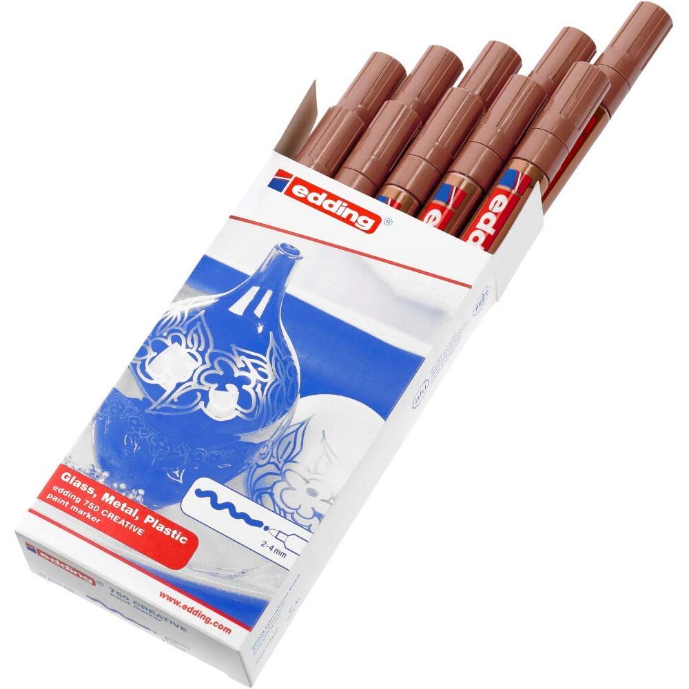edding 750 Glanzlackmarker - kupfer - 10 Lackmarker - Rundspitze 2-4 mm - Lackstift für Glas, Stein, Holz, Kunststoff und Papier - wasserfest, stark deckend
