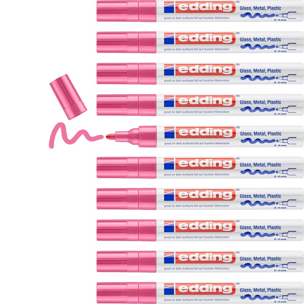 edding 750 Glanzlackmarker - pink - 10 Lackmarker - Rundspitze 2-4 mm - Lackstift für Glas, Stein, Holz, Kunststoff und Papier - wasserfest, stark deckend