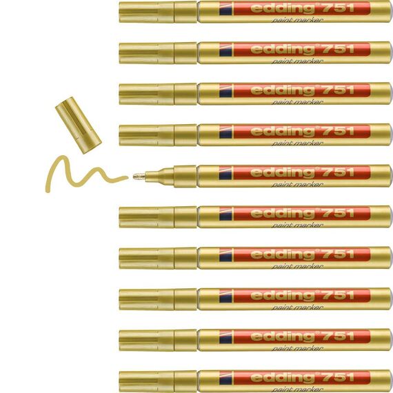 edding 751 Lackmarker - gold - 10 Lackmarker - Rundspitze 1-2 mm - Lackstift für Glas, Stein, Holz, Kunststoff und Papier - wasserfest, stark deckend