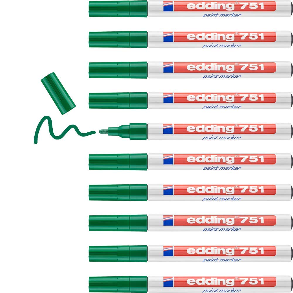 edding 751 Lackmarker - grün - 10 Stifte - Rundspitze 1-2 mm - Lackstift zur Markierung und Beschriftung von Metall, Glas, Stein oder Kunststoff - hitzebeständig, permanent, wischfest