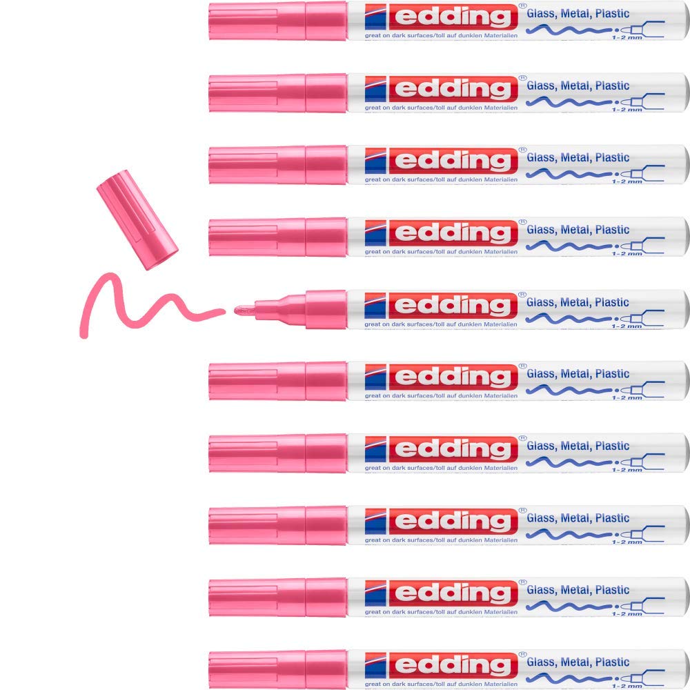 edding 751 Glanzlackmarker - pink - 10 Lackmarker - Rundspitze 1-2 mm - Lackstift für Glas, Stein, Holz, Kunststoff und Papier - wasserfest, stark deckend