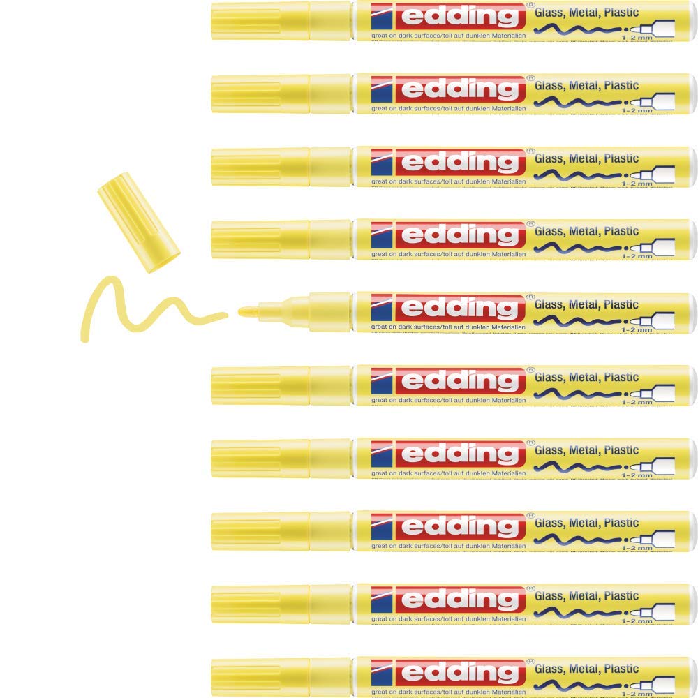 edding 751 Glanzlackmarker - pastellgelb - 10 Lackmarker - Rundspitze 1-2 mm - Lackstift für Glas, Stein, Holz, Kunststoff und Papier - wasserfest, stark deckend