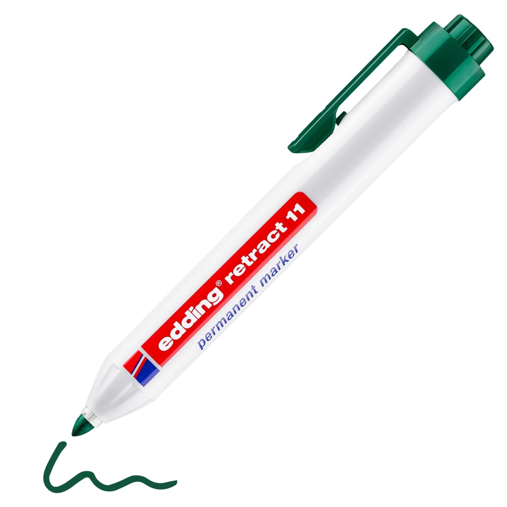 edding Retract 11 Permanent Marker - grün - 1 Stift - runde Feder 1,5-3 mm - wasserfest, schnelltrocknend - für die einfache Einhandbedienung - für Karton, Kunststoff, Holz, Metall, Glas