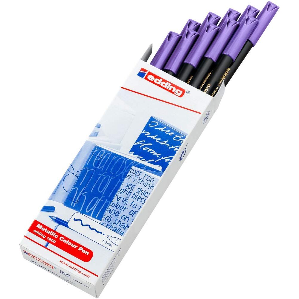 edding 1200 metallic Fasermaler - violett-metallic - 10 Stifte - Rundspitze 1-3 mm - zum Malen, Schreiben und Zeichnen mit glänzendem Metalliceffekt - für Gästebücher, Grusskarten, Fotoalben, Scrapbook