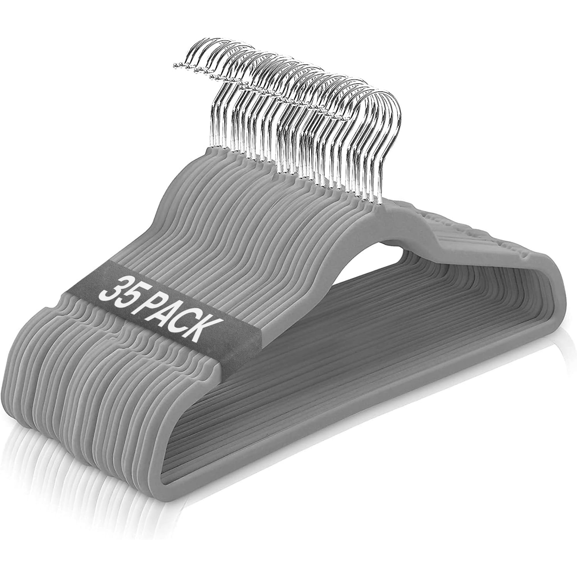 Ediesi, Samt-Kleiderbügel, 35 Stück, grau, rutschfest, weich, dünn, für Hose, Hemd, Rock, Anzüge (35 Stück, Grau ohne Korwatte)