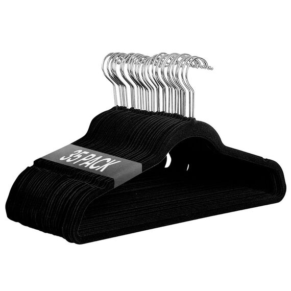 Ediesi, Samt-Kleiderbügel, 35 Stück, schwarz, rutschfest, weich, dünn, für Hose, Hemd, Rock, Anzüge (35 Stück, schwarz ohne Korwatte)