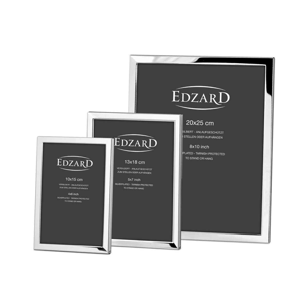 EDZARD Bilderrahmen Bergamo für Foto 9 x 13 cm, edel versilbert, anlaufgeschützt, mit Samtrücken, Fotorahmen zum Stellen