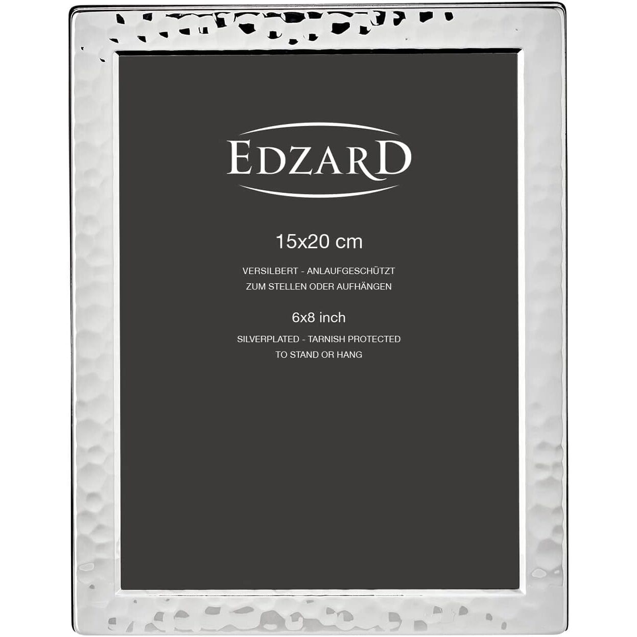 EDZARD Bilderrahmen Pavia für Foto 15 x 20 cm, gehämmert, edel versilbert, anlaufgeschützt, Samtrücken, 2 Aufhänger, Silber Fotorahmen zum Stellen oder Hängen