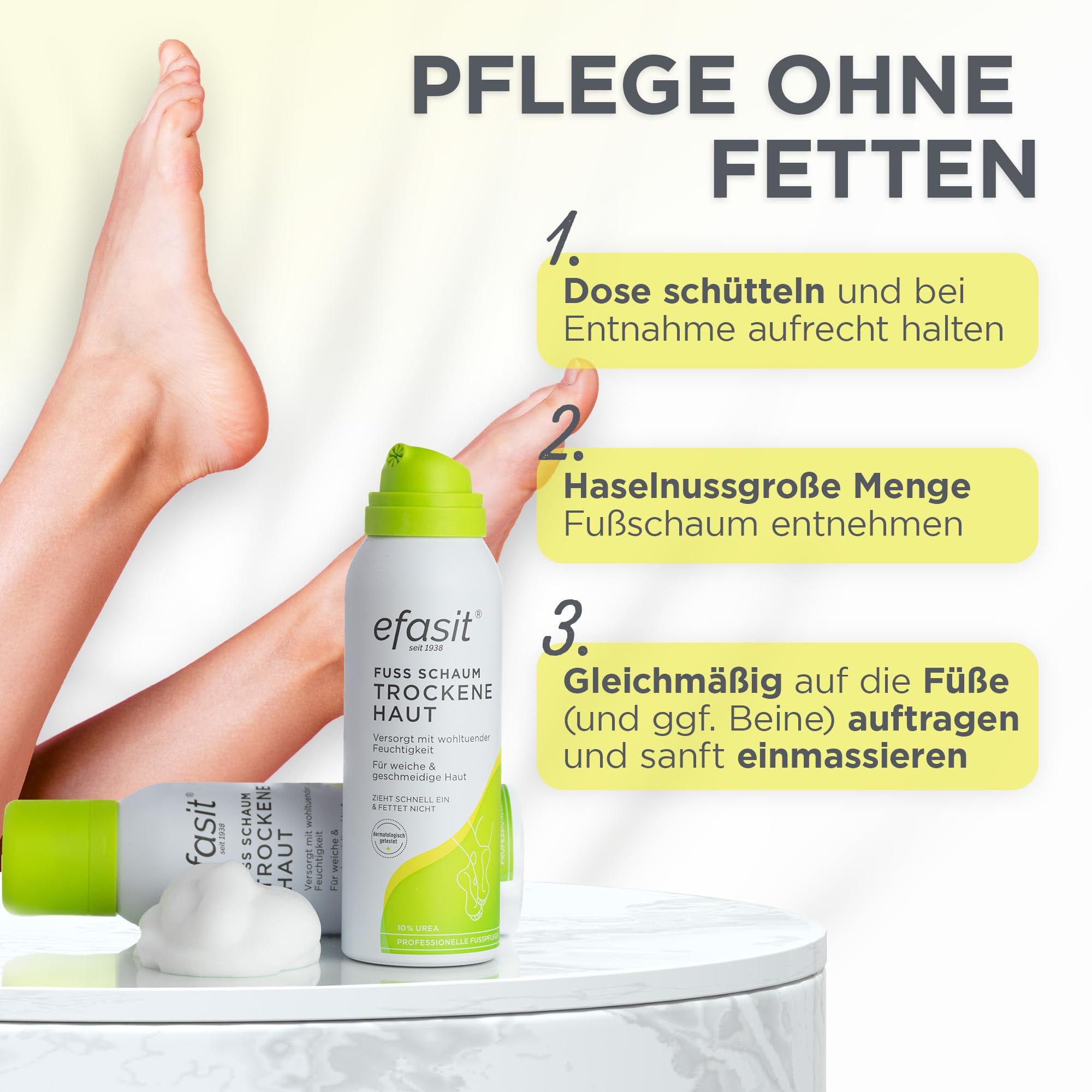efasit Fussschaum Trockene Haut – Feuchtigkeits-Schaum mit 10 % Urea für intensiv gepflegte Füsse