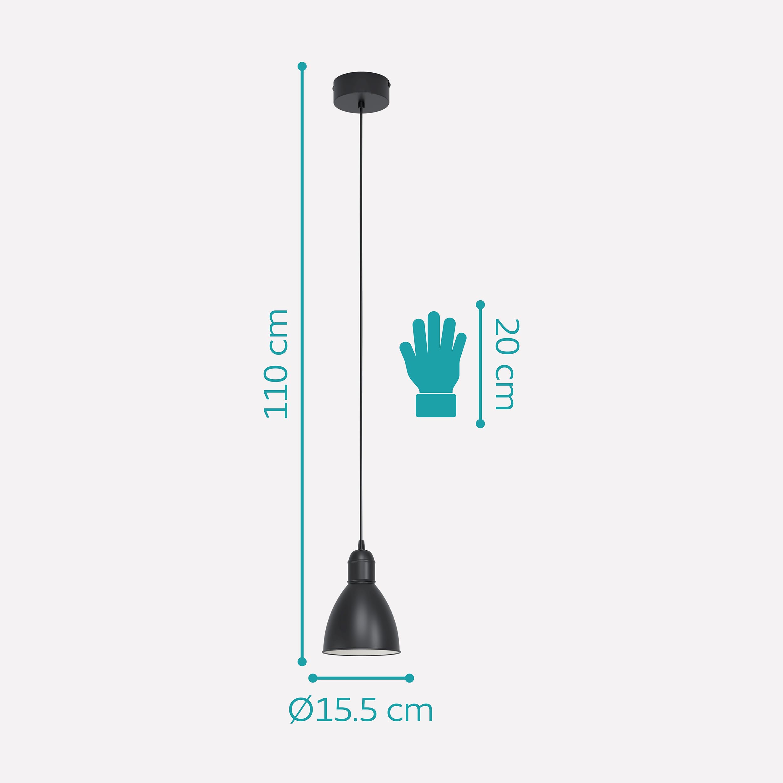 EGLO Pendellampe Priddy, 1 flammige Vintage Pendelleuchte im Industrial Design, Retro Hängelampe aus Stahl, Farbe: Schwarz, weiss, Fassung: E27