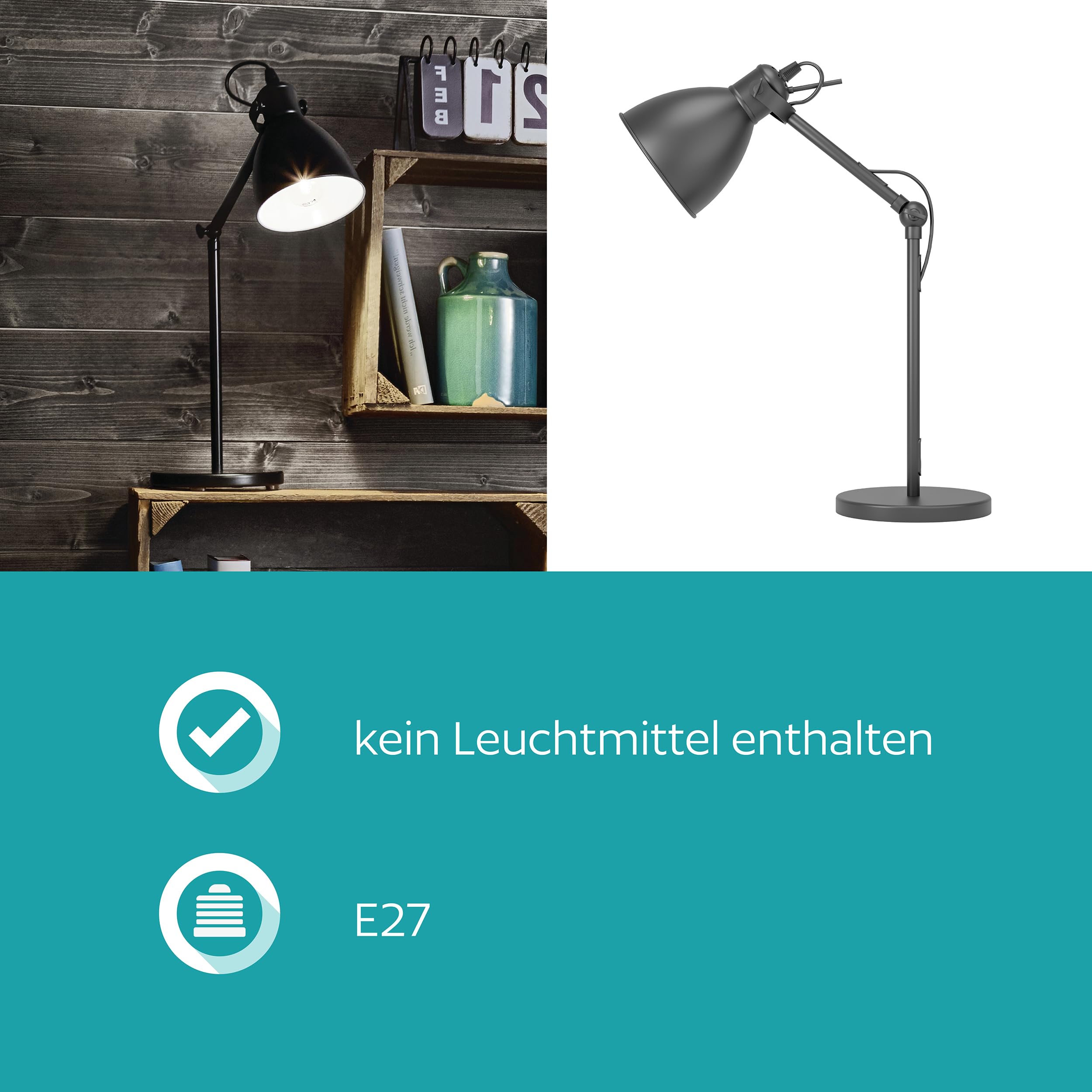 EGLO Tischlampe Priddy, 1 flammige Vintage Tischleuchte im Industrial Design, Retro Lampe, Nachttischlampe aus Stahl, Farbe: Schwarz, weiss, Fassung: E27, inkl. Schalter