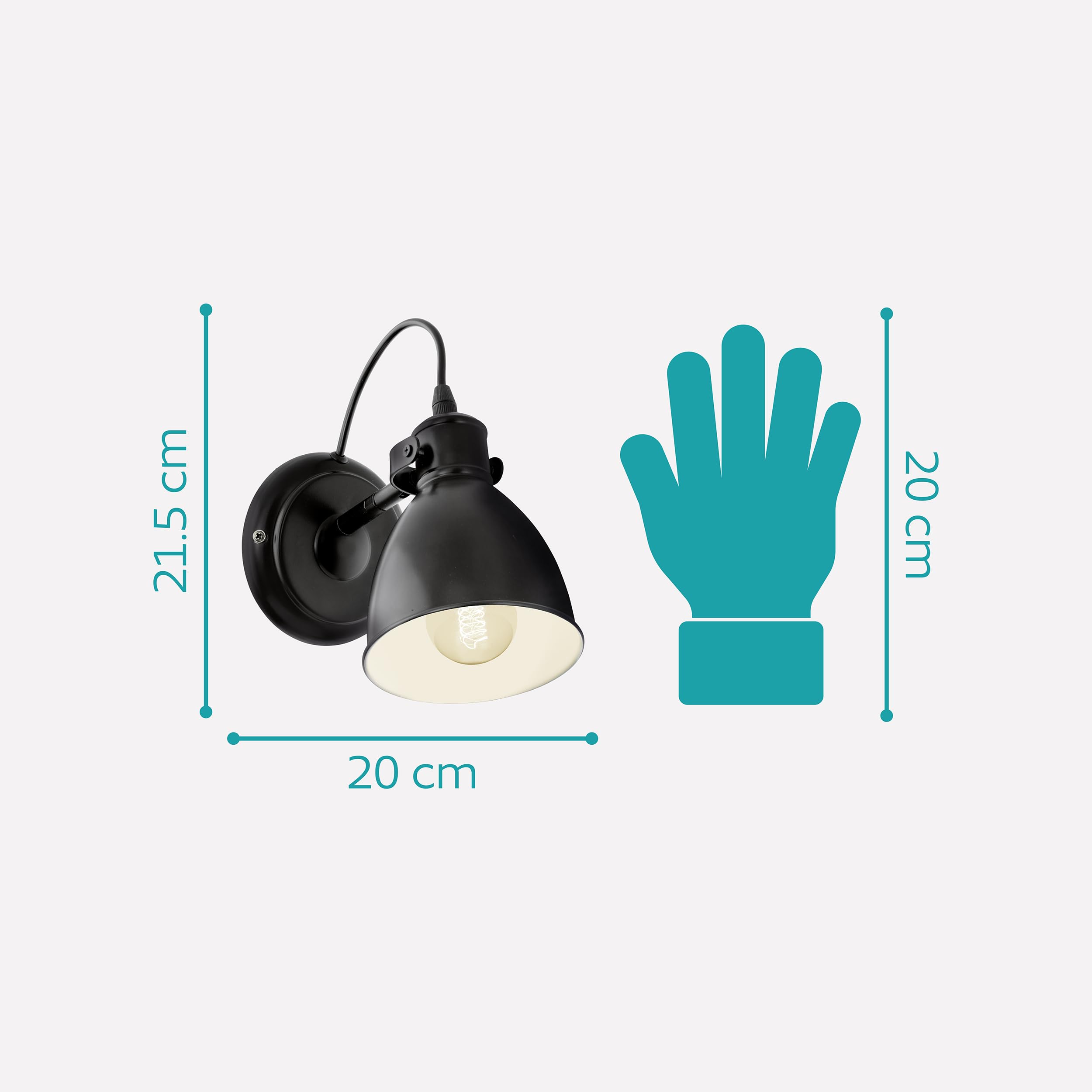 EGLO Wandlampe Priddy, 1 flammige Vintage Wandleuchte im Industrial Design, Retro Wandspot aus Stahl, Farbe: Schwarz, weiss, Fassung: E27
