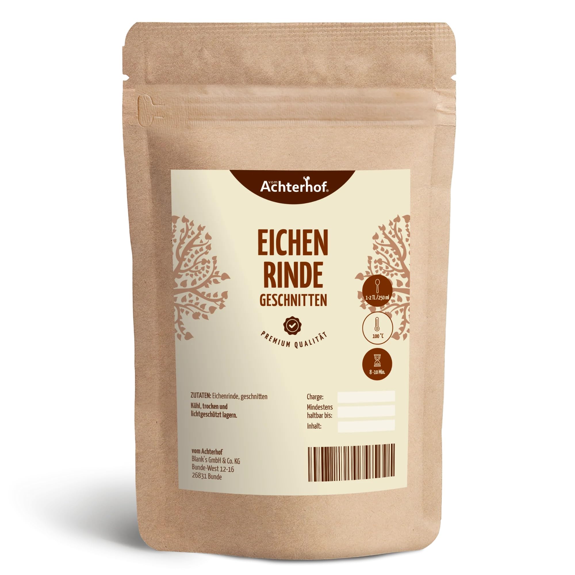 Eichenrinde 500g | Eichenrinde getrocknet und geschnitten | ideal für Sitz- oder Fussbäder, Wickel/Umschläge oder auch als Tee| naturrein | vom Achterhof
